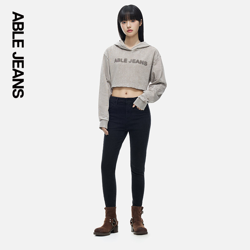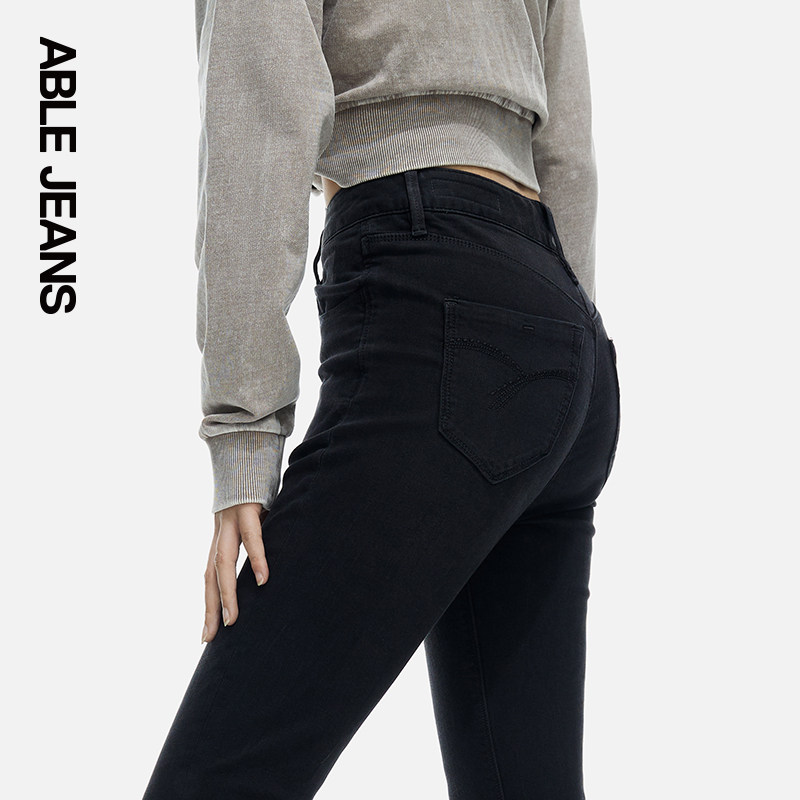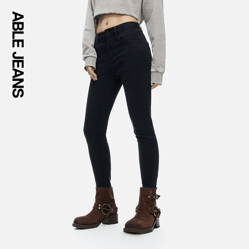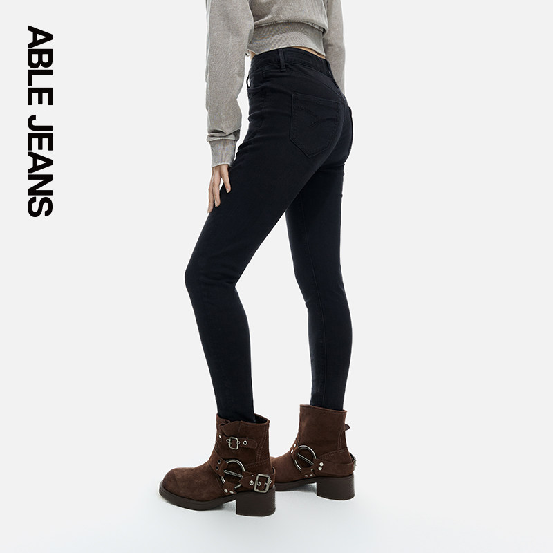 ABLE JEANS【铅笔裤】女士加黑色高腰显瘦紧身九分牛仔裤小脚裤