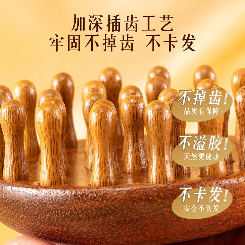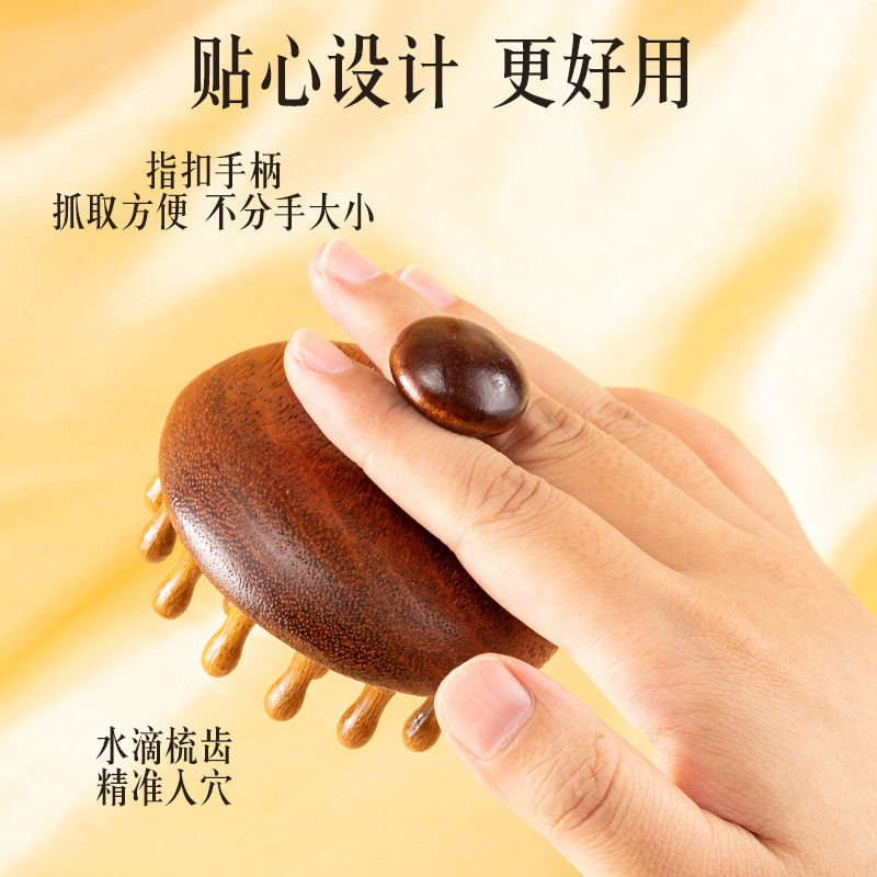 圆盘经络梳木质洗头刷按摩器金丝檀木头部按摩梳刮痧头疗精油疏通