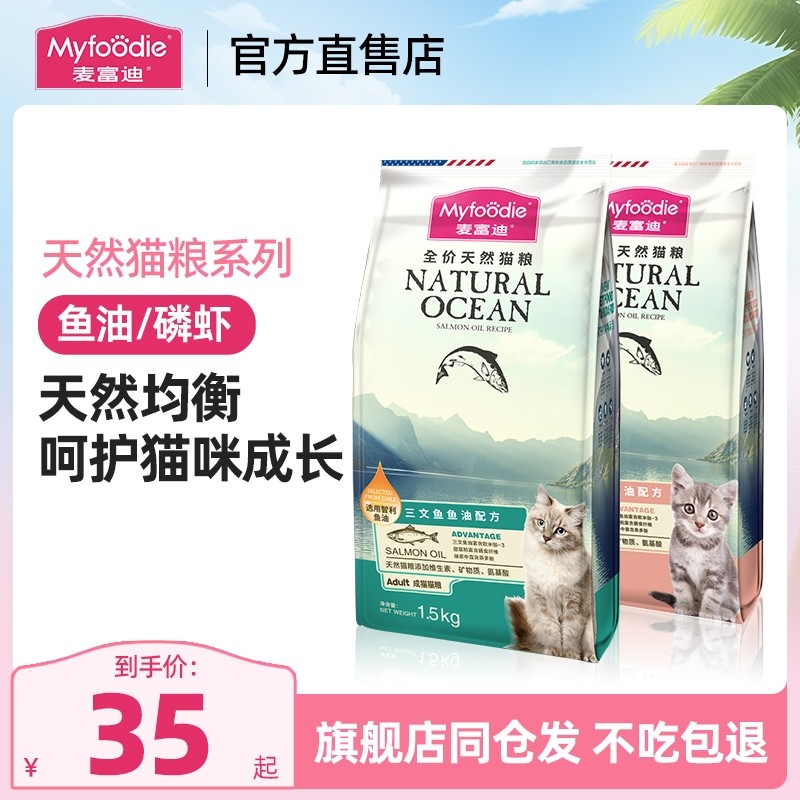 麦富迪猫粮三文鱼油成猫幼猫天然专用粮官方旗舰店正品猫粮1.5kg
