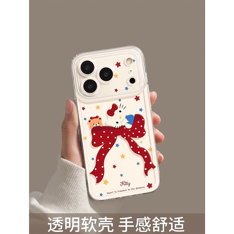 蝴蝶结凯蒂猫适用苹果17手机壳iPhone15promax新款16华为p70荣耀300防摔13小米14透明vivo全包oppo软壳findx8