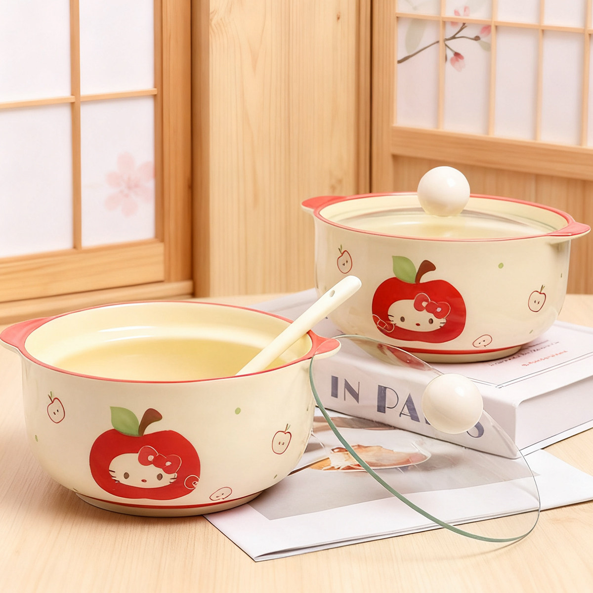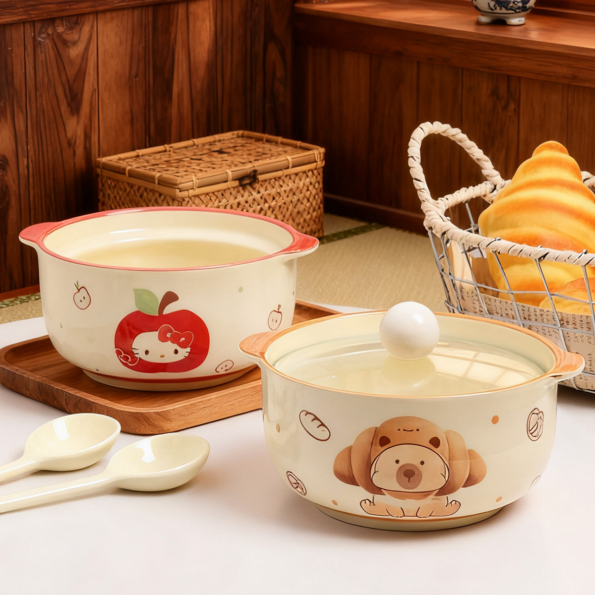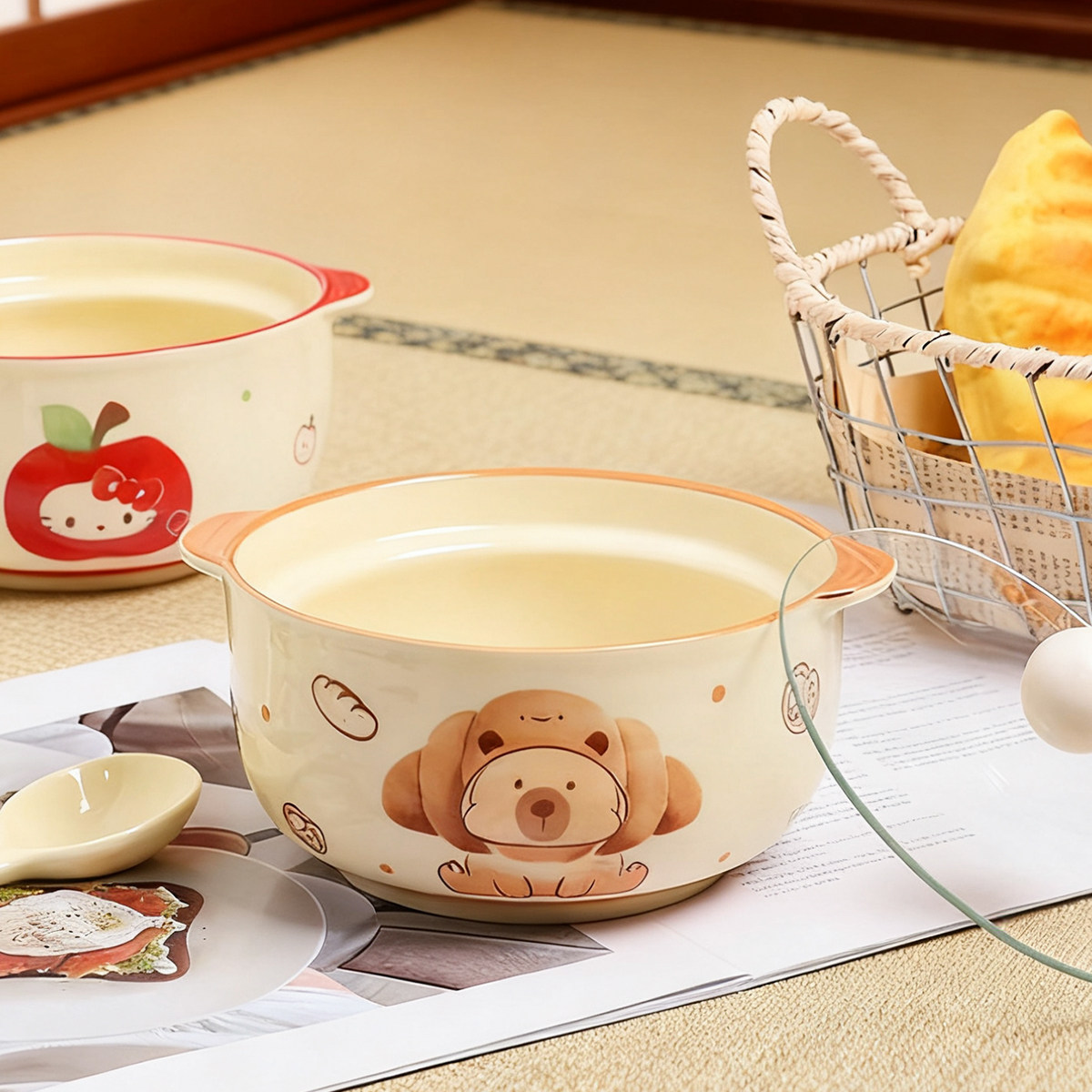 可爱卡通陶瓷泡面碗带盖双耳汤碗学生宿舍家用2025年新款一人食用