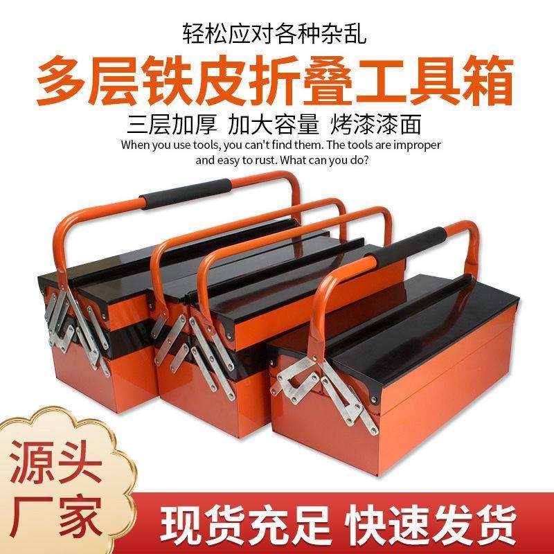铁皮工具箱加厚大号手提式汽车维修家用五金三层折叠功收纳箱