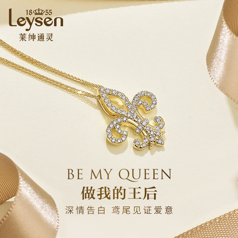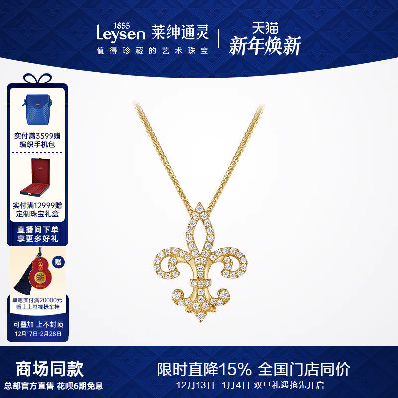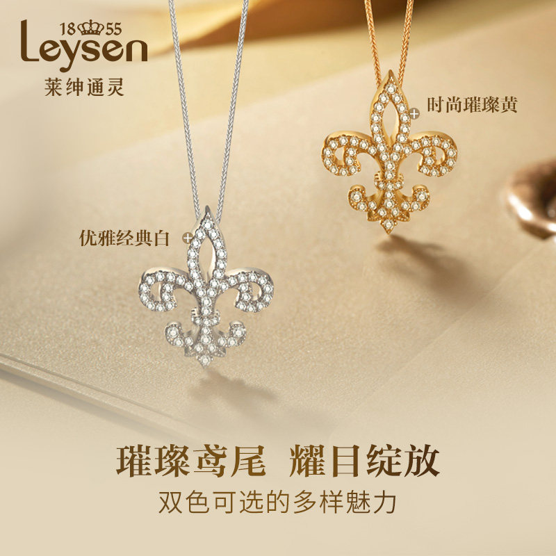 【商场同款】莱绅通灵珠宝 18k金钻石项链女吊坠 鸢尾花满钻吊坠