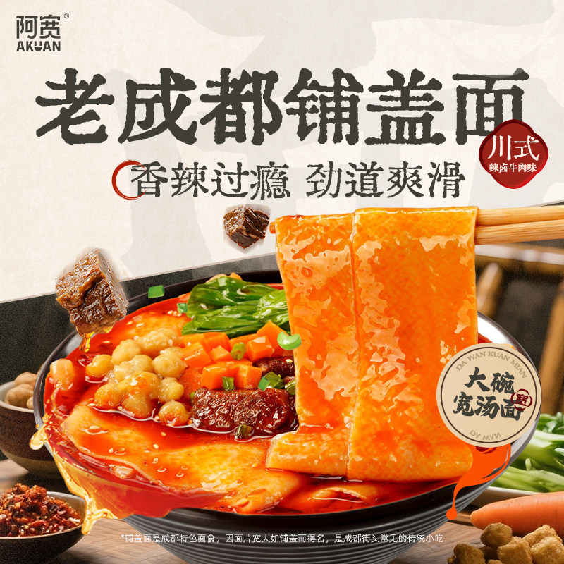 来了阿宽老成都铺盖面大碗宽面泡面方便速食袋装板面面条火鸡特色