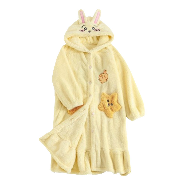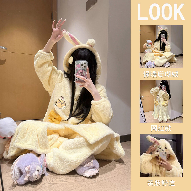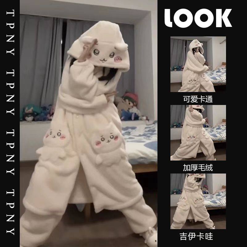 珊瑚绒睡衣秋女款2025新款冬季男士加绒加厚乌萨奇睡袍睡裙家居服