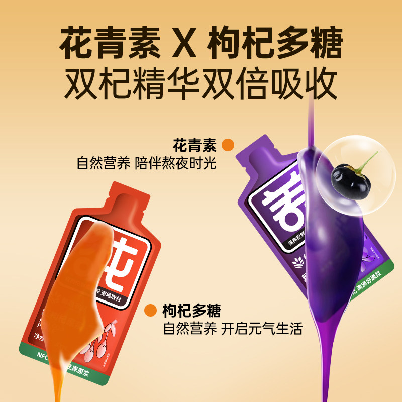 中国邮政红枸杞原浆50袋黑枸杞原浆50袋宁夏鲜果鲜榨早红晚黑袋装