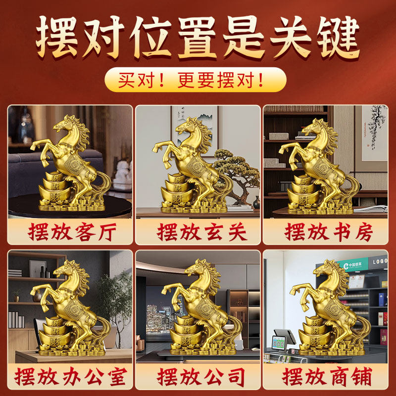 黄铜生肖马摆件中式马上发财招财桌面装饰品家居装饰摆件祝福礼品