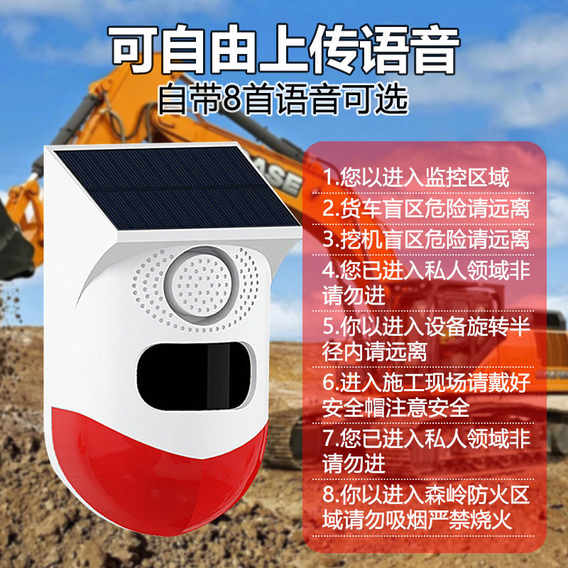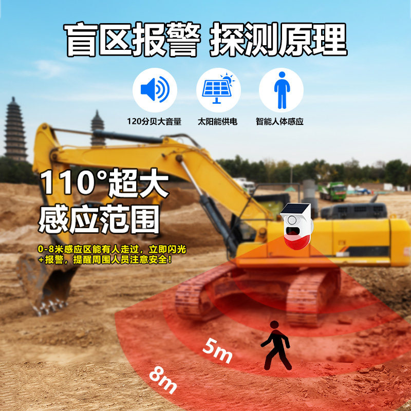 挖机盲区报警器旋转大货车倒车雷达太阳能语音播报器感应远程进入