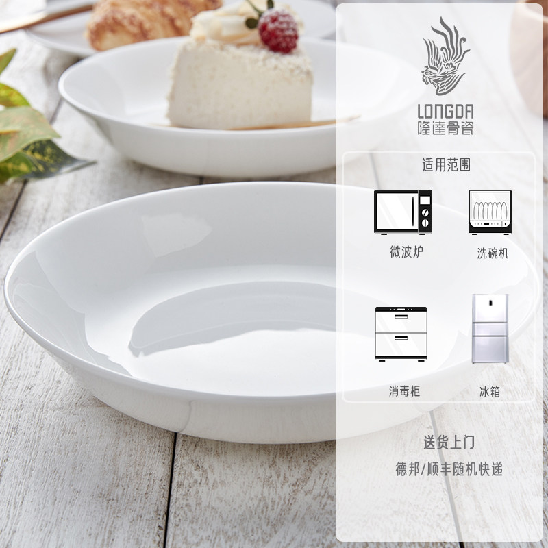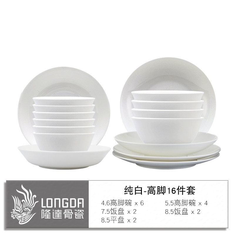 隆达骨瓷高端餐具套装纯白高脚十个碗十个盘套装全白陶瓷碗 盘子