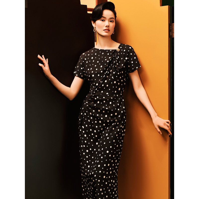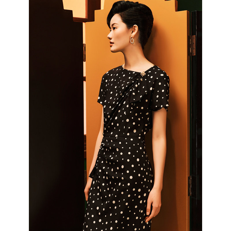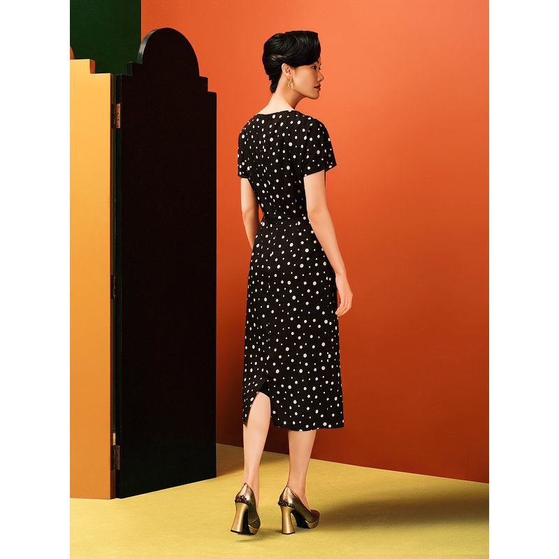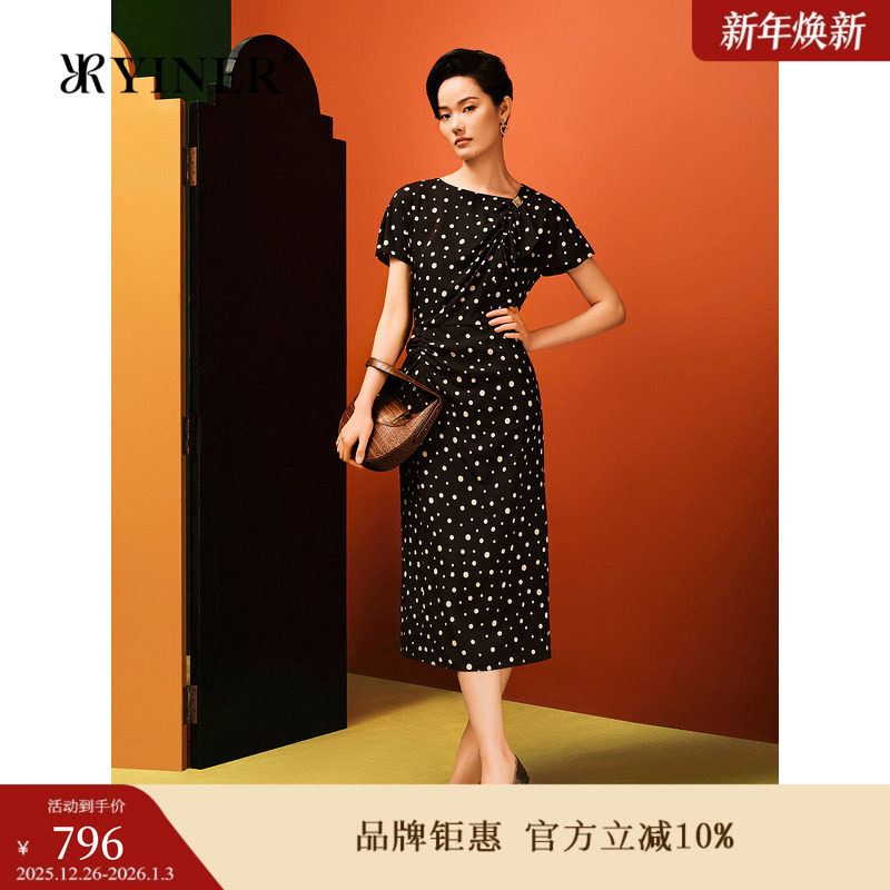 【1996系列】YINER音儿女装夏季弹力真丝波点印花连衣裙