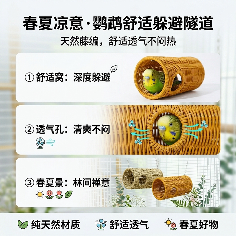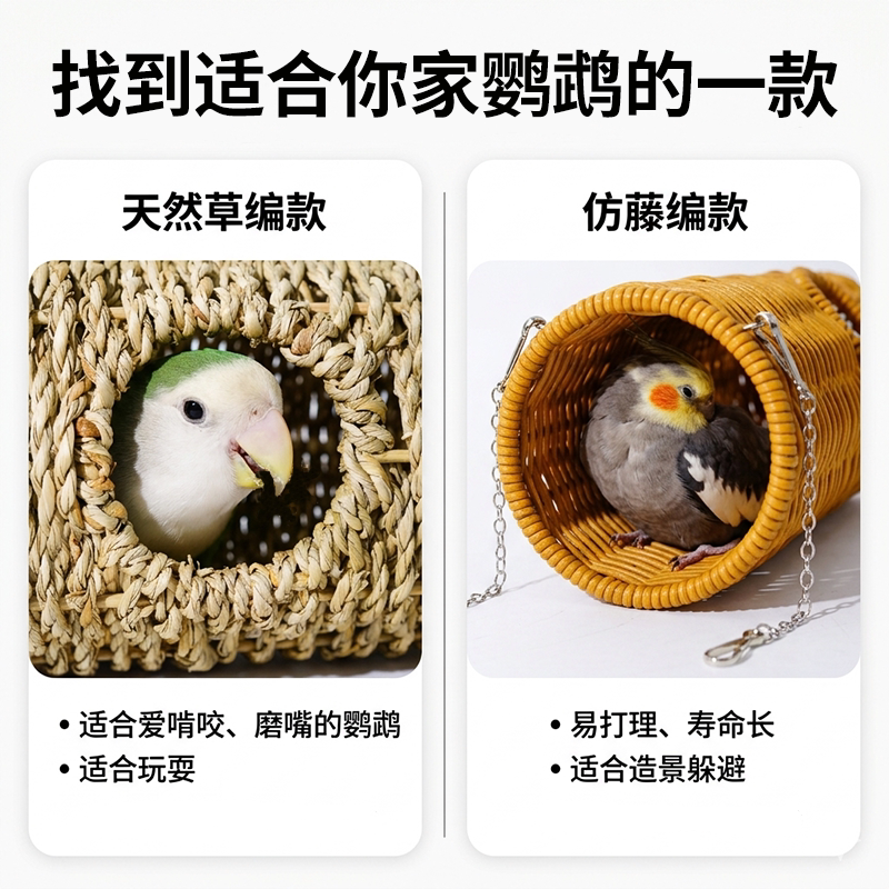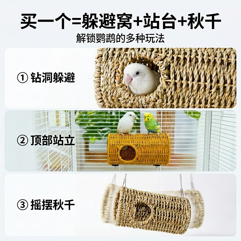 鹦鹉躲避洞啃咬攀爬避暑遮阳草编通道窝秋千玄风牡丹虎皮鸟笼配件