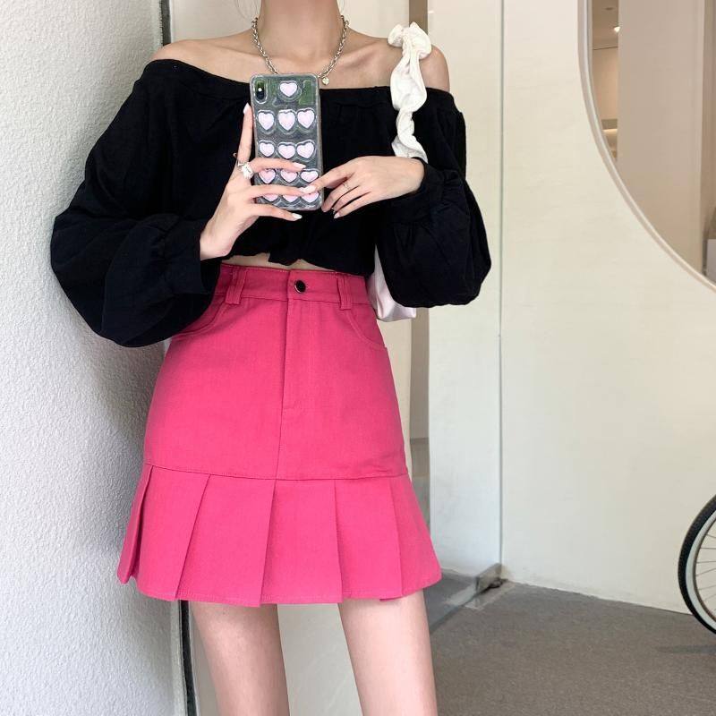 百褶裙女小个子夏季新款高腰显瘦半身裙纯色大码学院风jk短裙套装