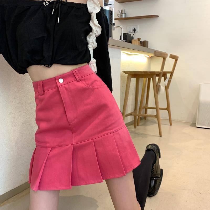 高腰百褶裙女夏季大码半身裙胖mm设计感小个子学院风显瘦a字短裙