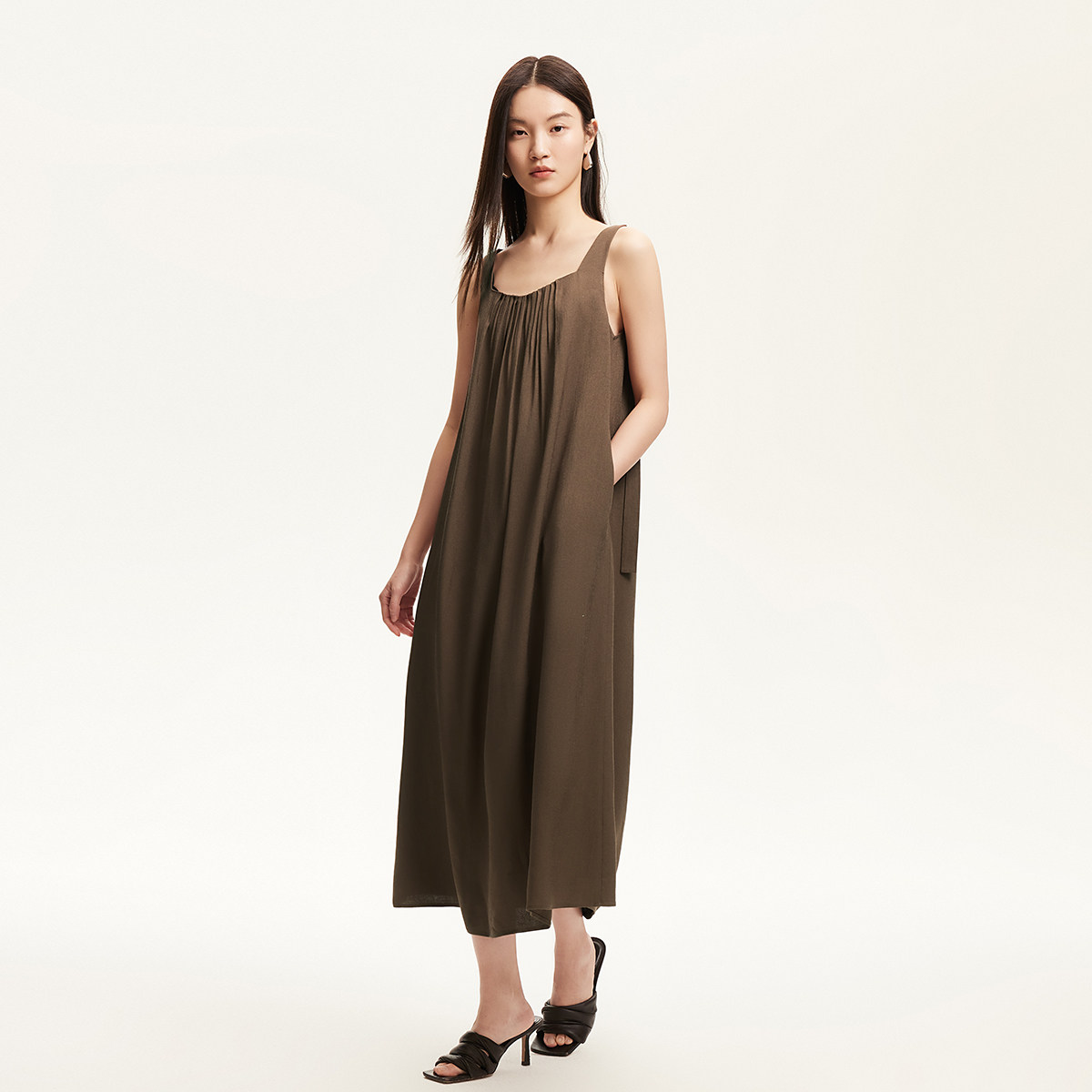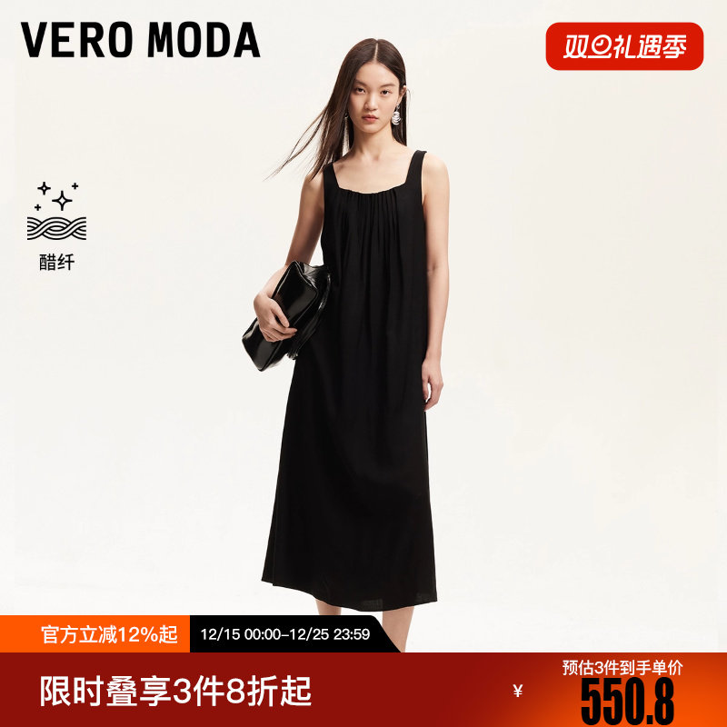 Vero Moda连衣裙2025冬新款度假风后背镂空压褶吊带裙32527A009