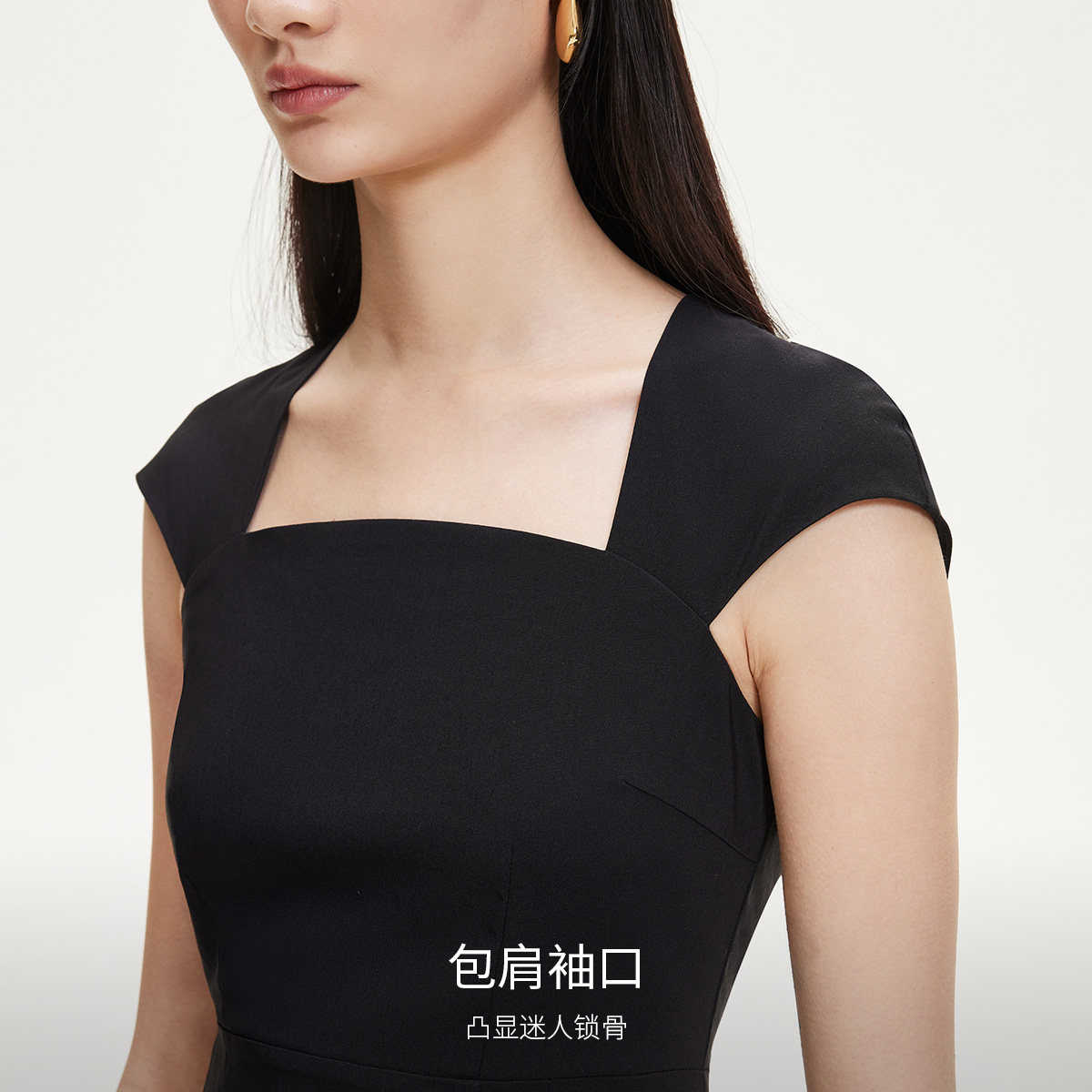 绫致Vero Moda连衣裙25冬A字方领包肩收腰中裙浅冬温柔时尚