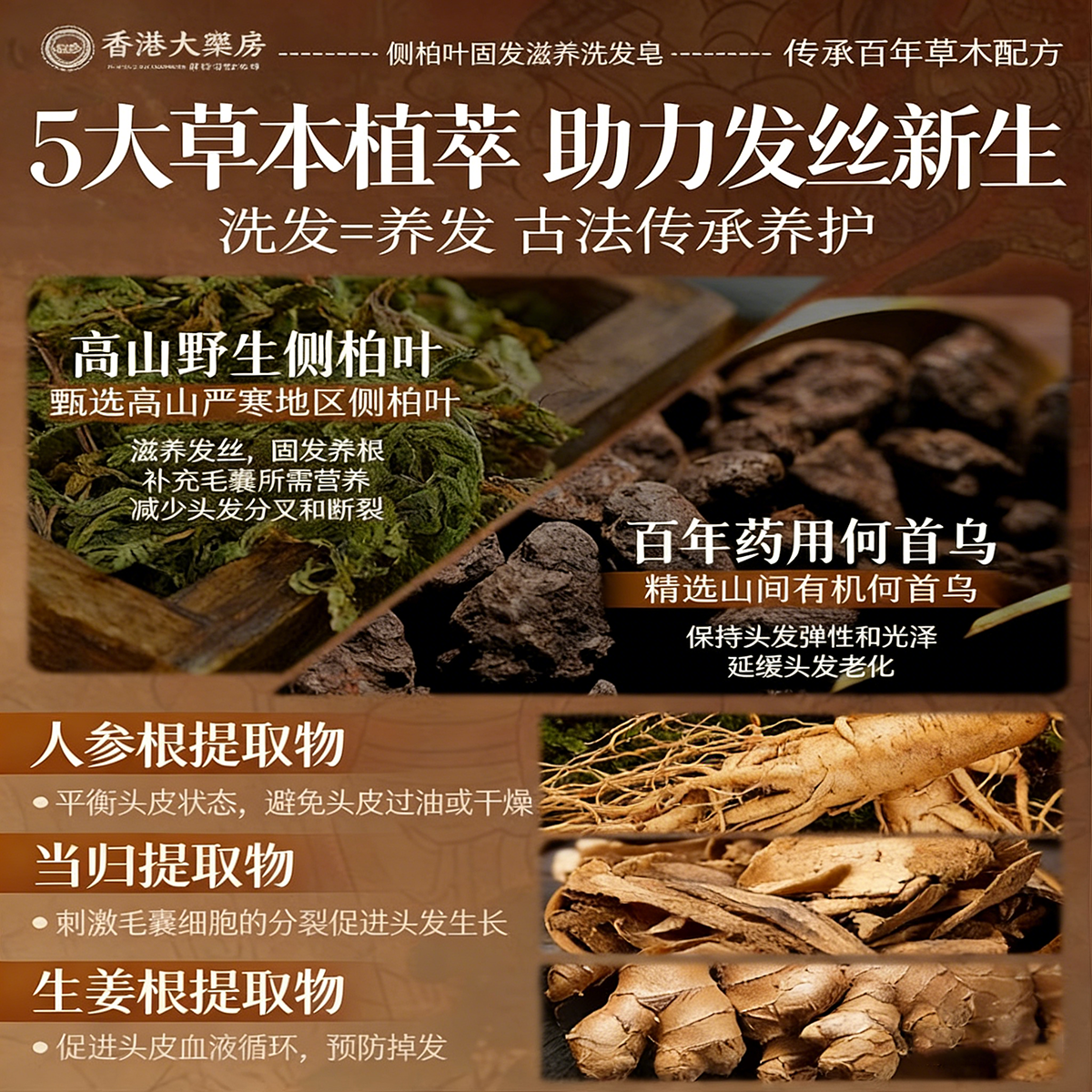 侧柏叶洗发皂何首乌新疆乌斯曼草黑发控油去屑香皂手工固发古法