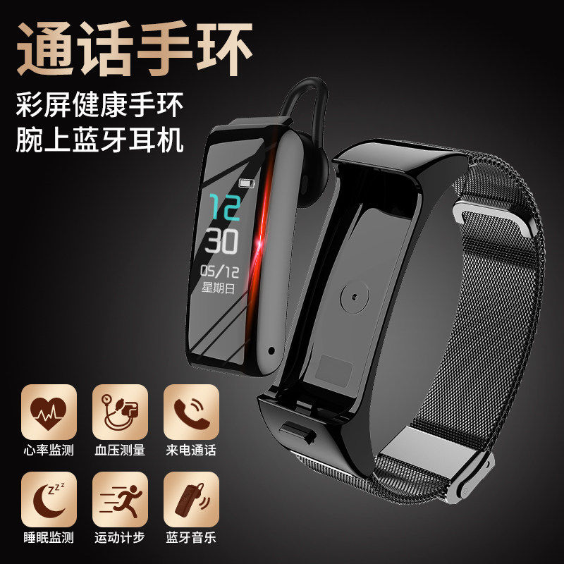 智能彩屏运动手环男女二合一蓝牙耳机通话手环手表测心率血压