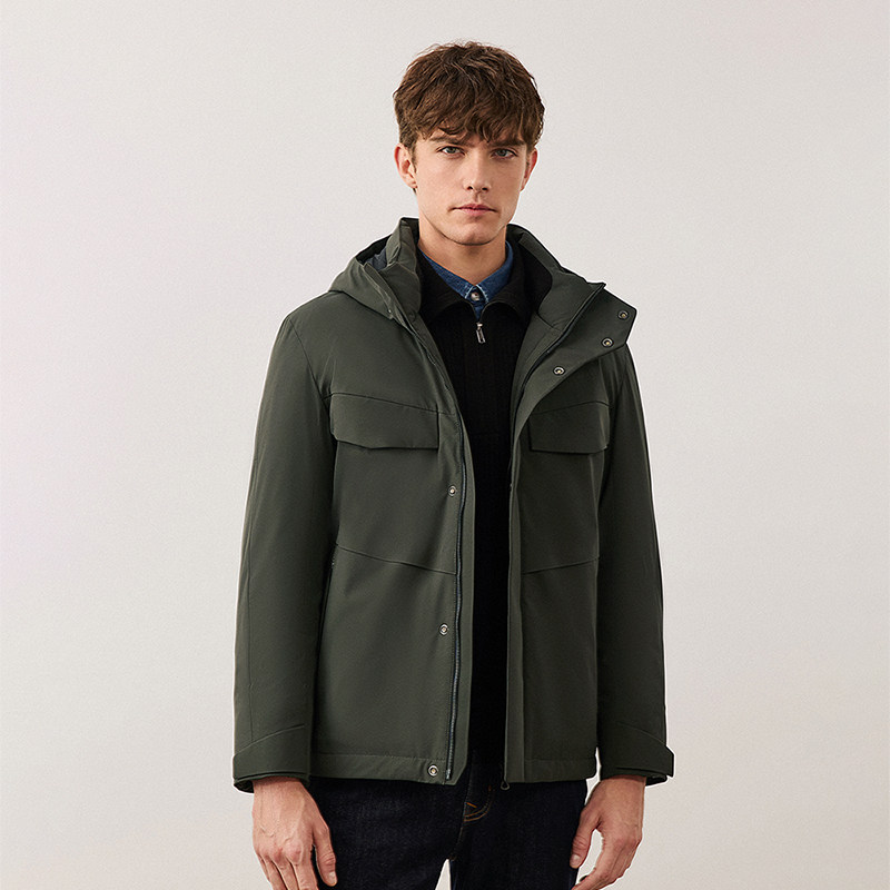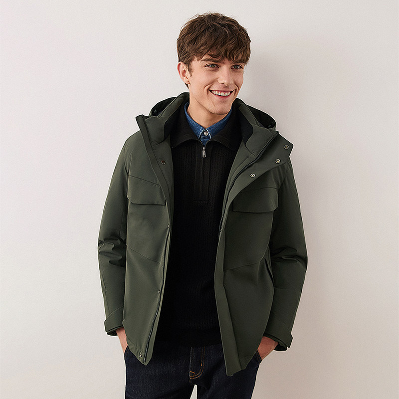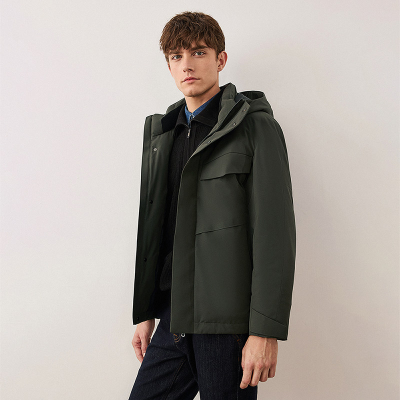 骆驼黑钻5 男装羽绒服防风拒水面包防寒服时尚连帽短款外套秋冬男