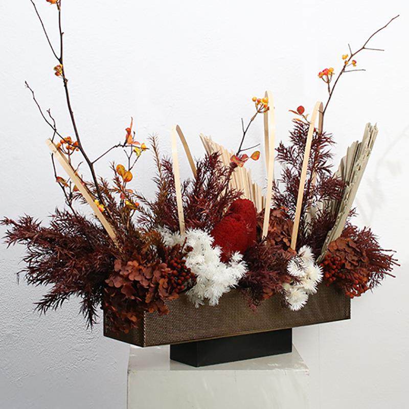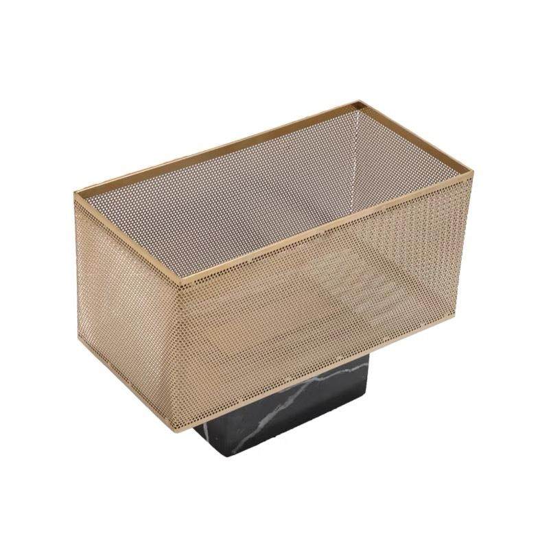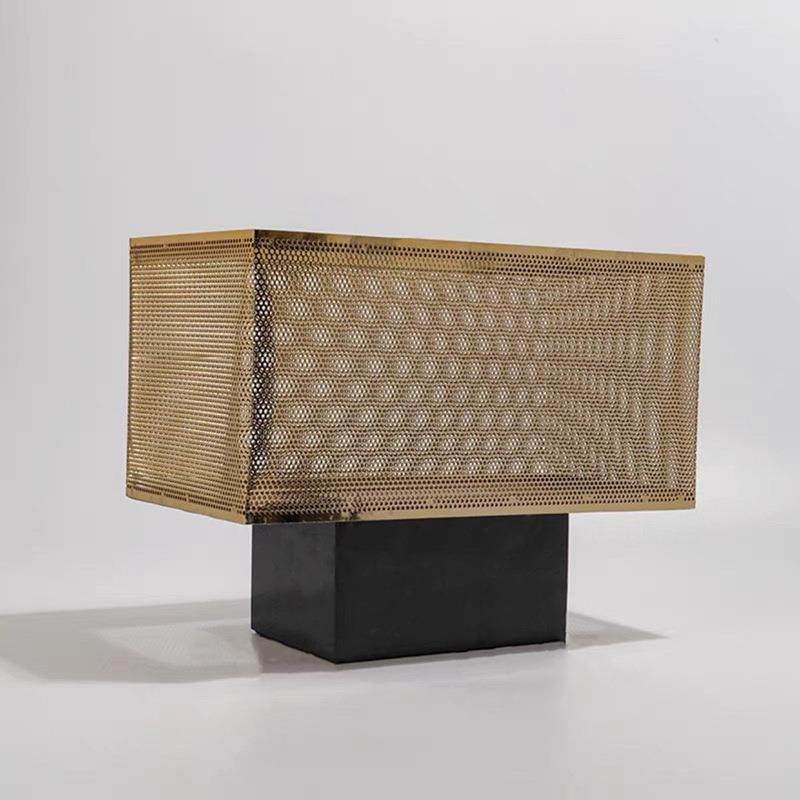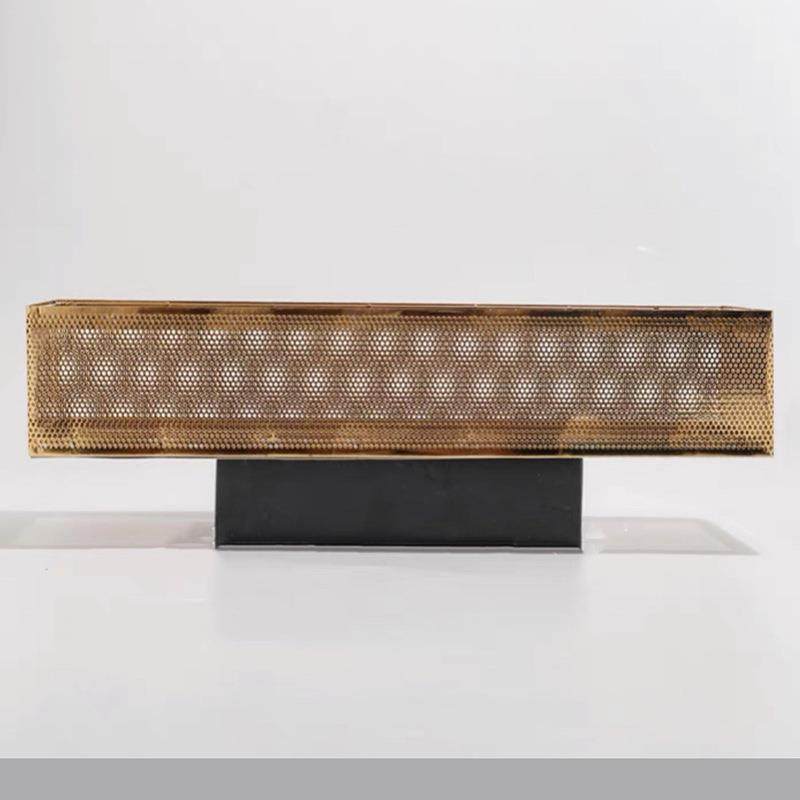 现代轻奢花瓶金属长方形花器摆件样板房售楼处网格花盆软装饰品