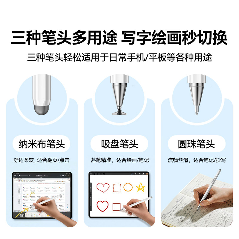 电容笔iPad艾卓吉尔A8适用苹果平板air触控笔ipencil手写笔iPad触屏笔铅笔ipad11笔apple pencil通用笔尖多彩