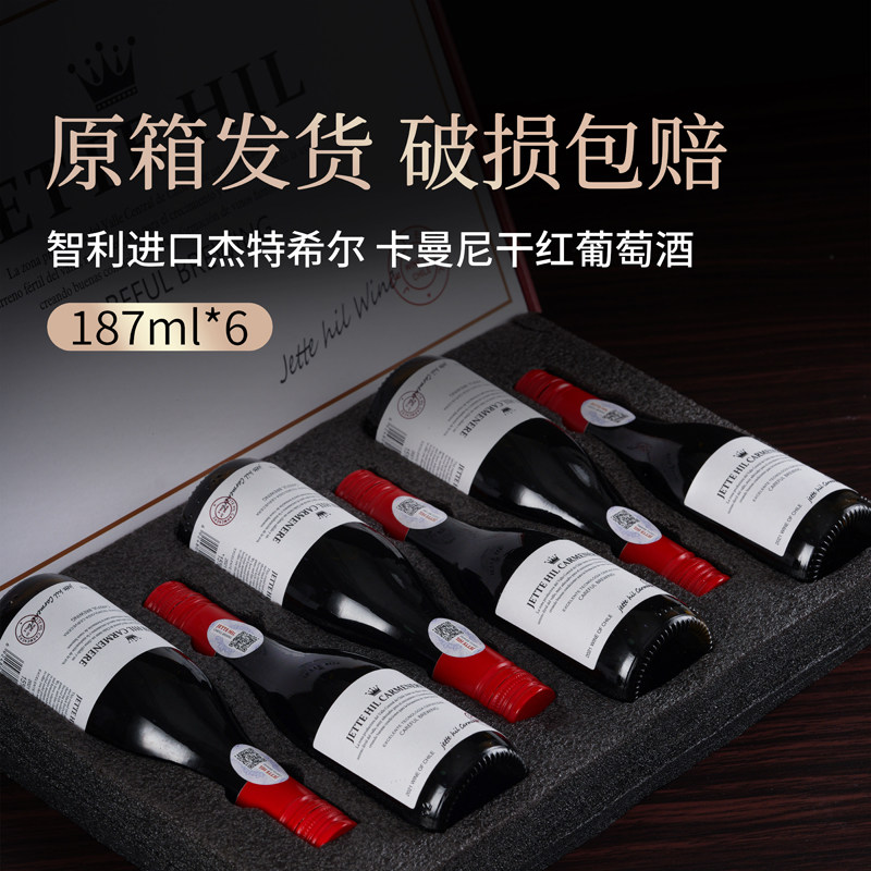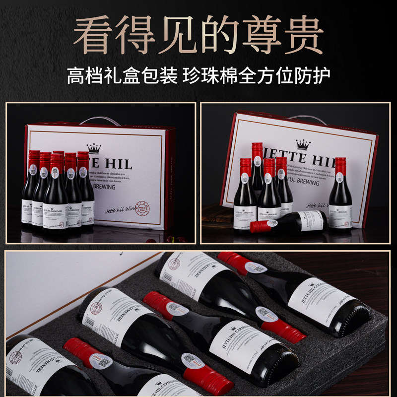 15度智利干红葡萄酒整箱6支高档礼盒装红酒187ml晚安小酒自饮送礼