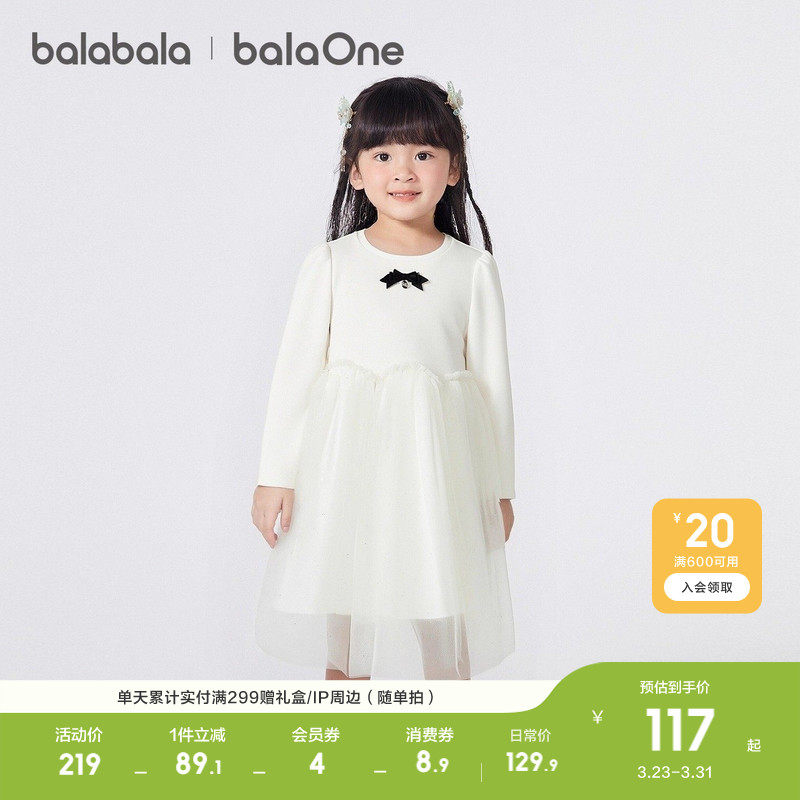 【balaOne】巴拉巴拉童装女童连衣裙2025新款春装网纱裙甜美洋气