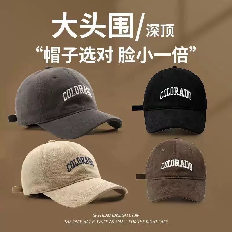 美式复古字母灰色棒球帽女高级感宽檐大头围显脸小百搭鸭舌帽子男
