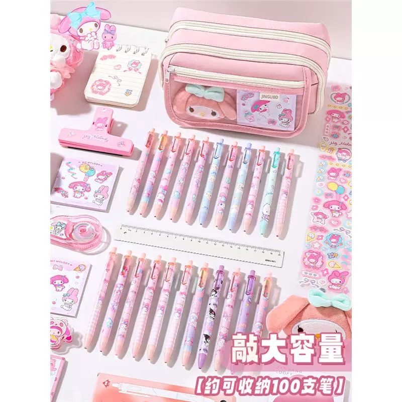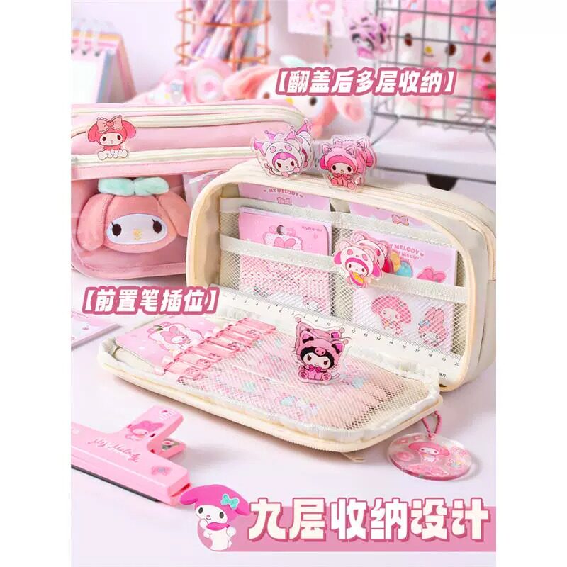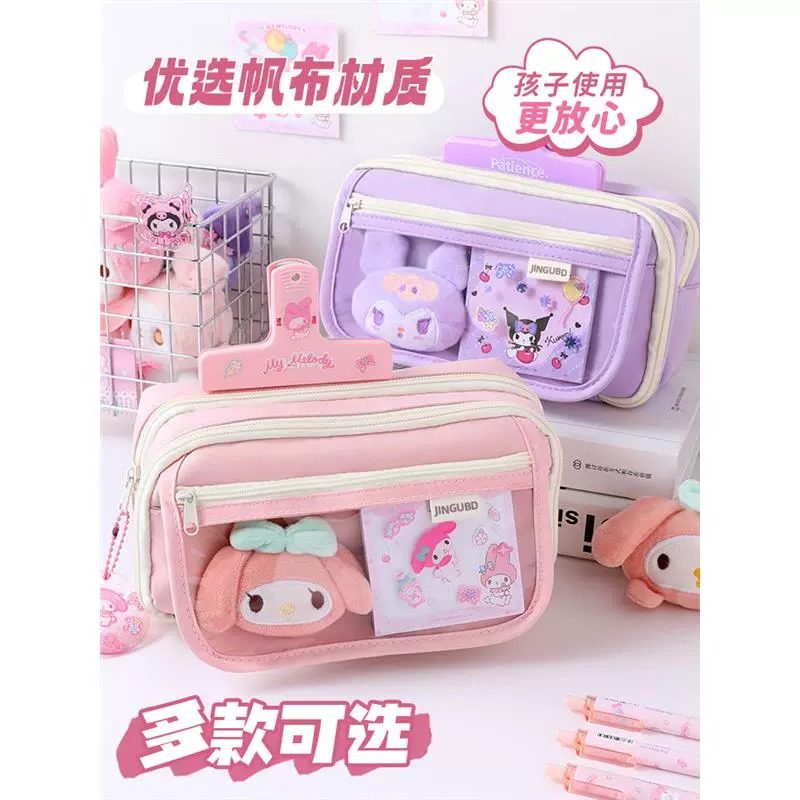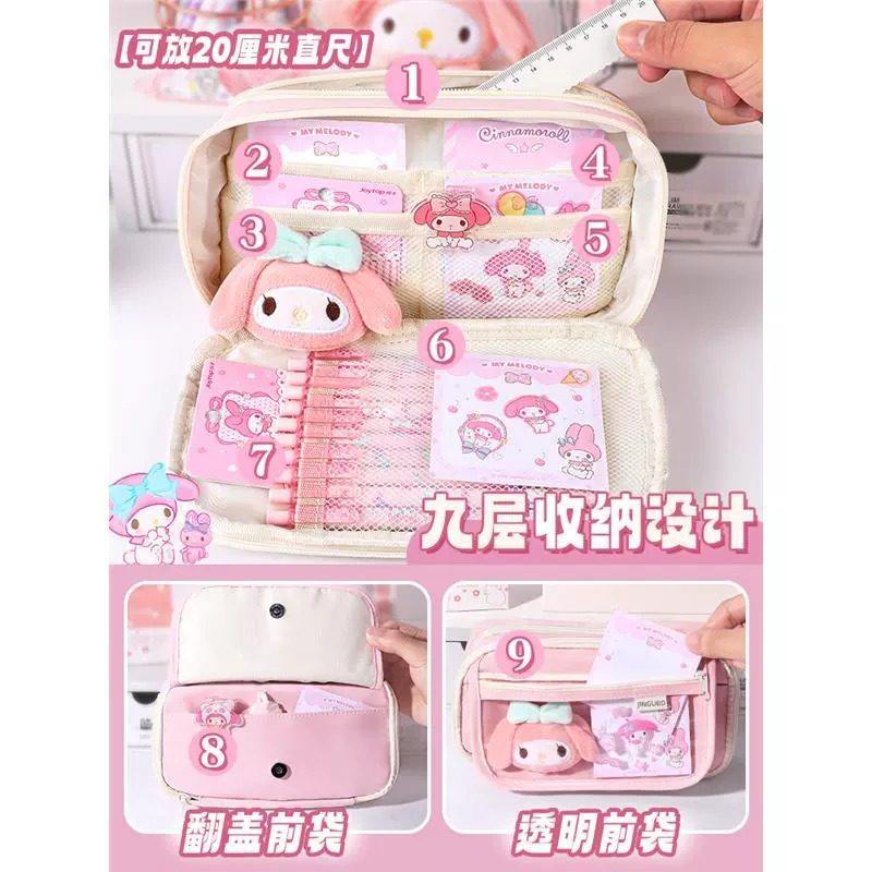女生小学生笔袋文具盒女孩款九层高颜值透明文具袋超大容量初中生用送库洛米美乐蒂贴纸2025新款铅笔盒女孩版