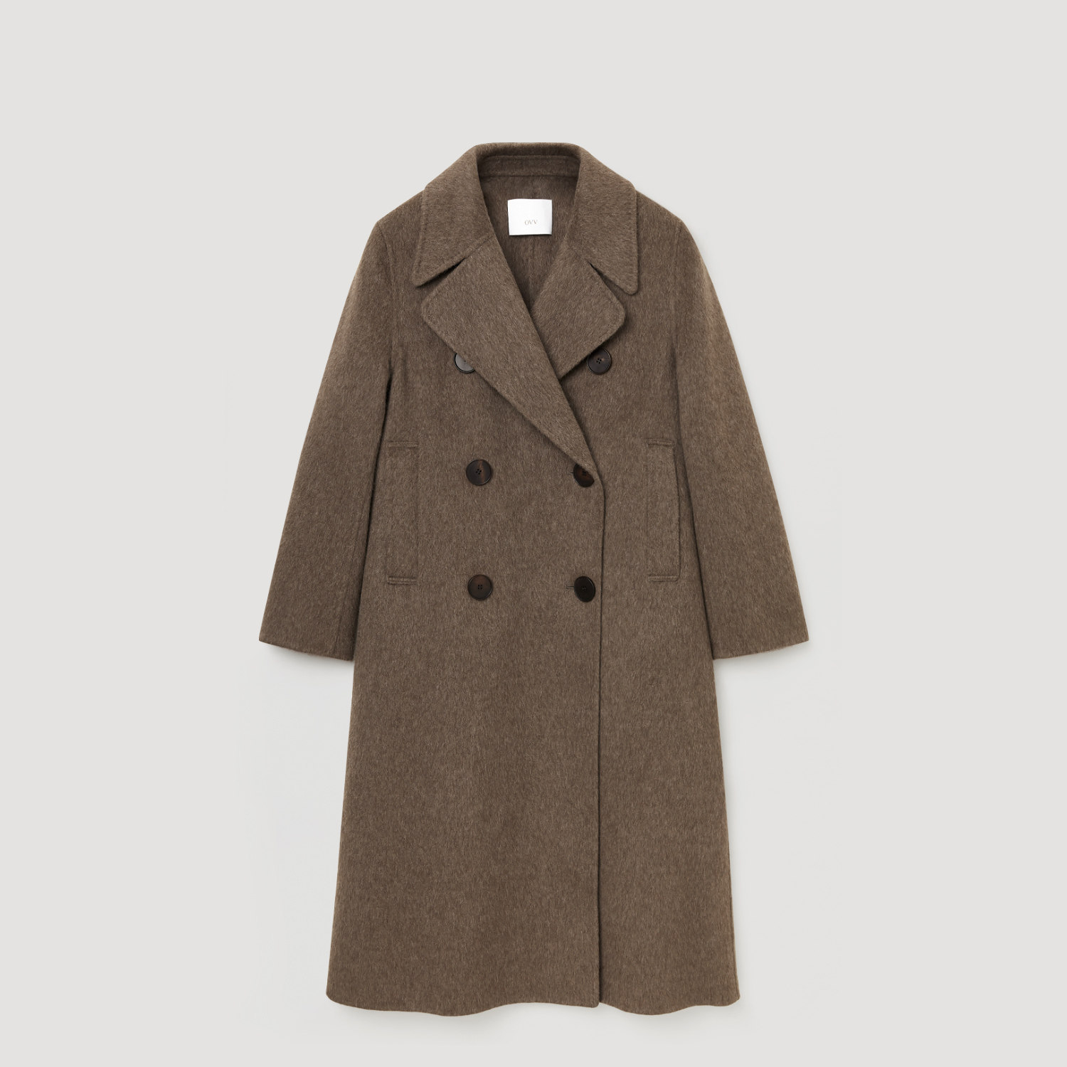 OVV秋冬热卖女装复古平驳领双排扣中长双面呢羊毛大衣
