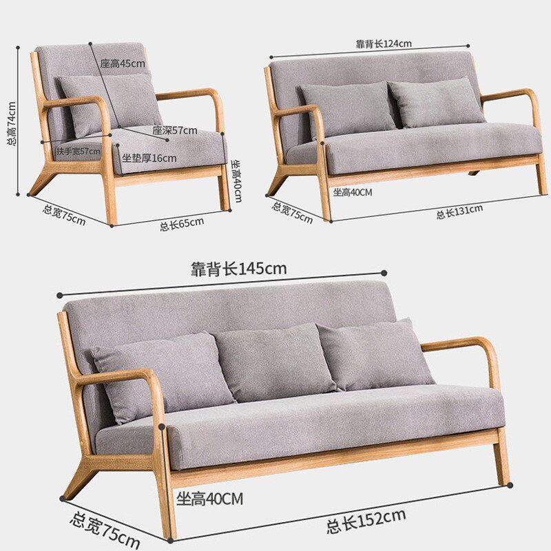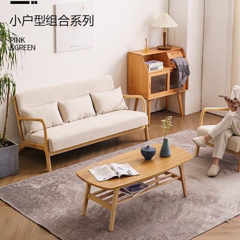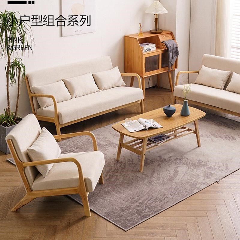 日式原木直排布艺沙发小户型客厅双人三人位桌椅茶几套装实木家具
