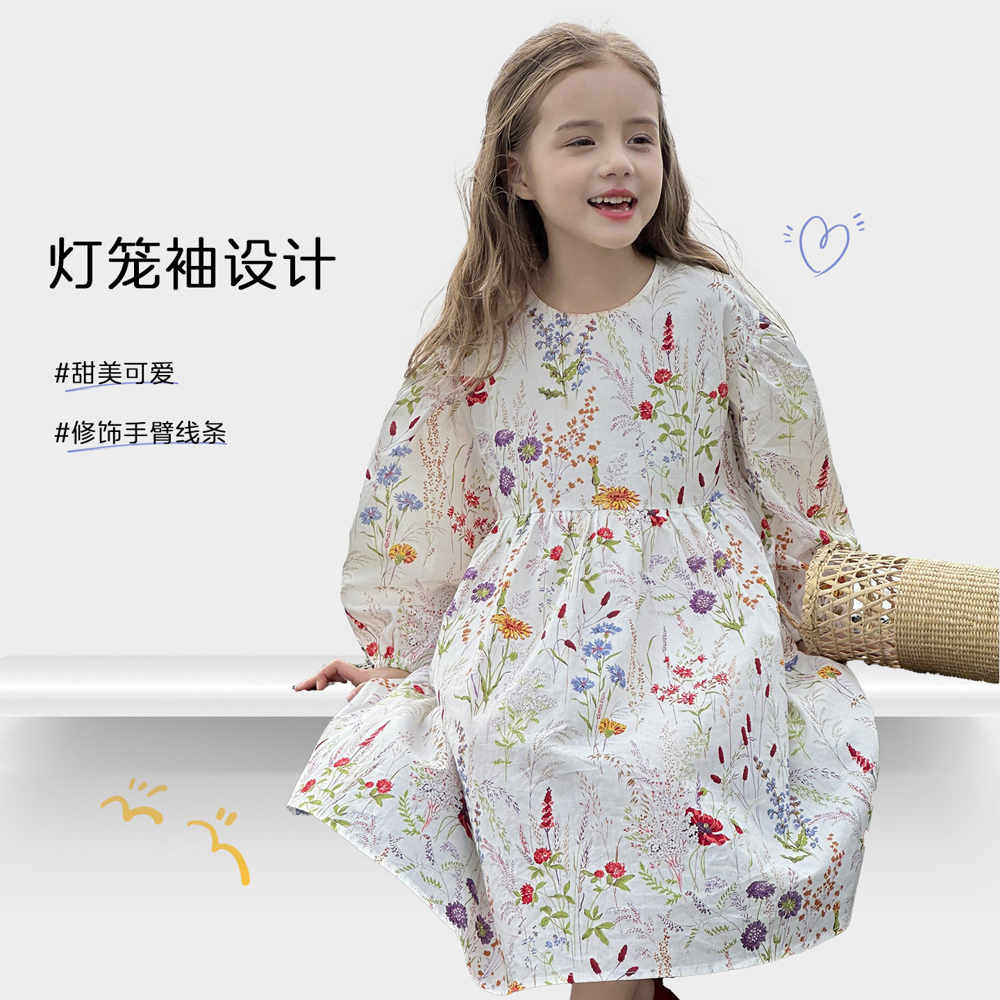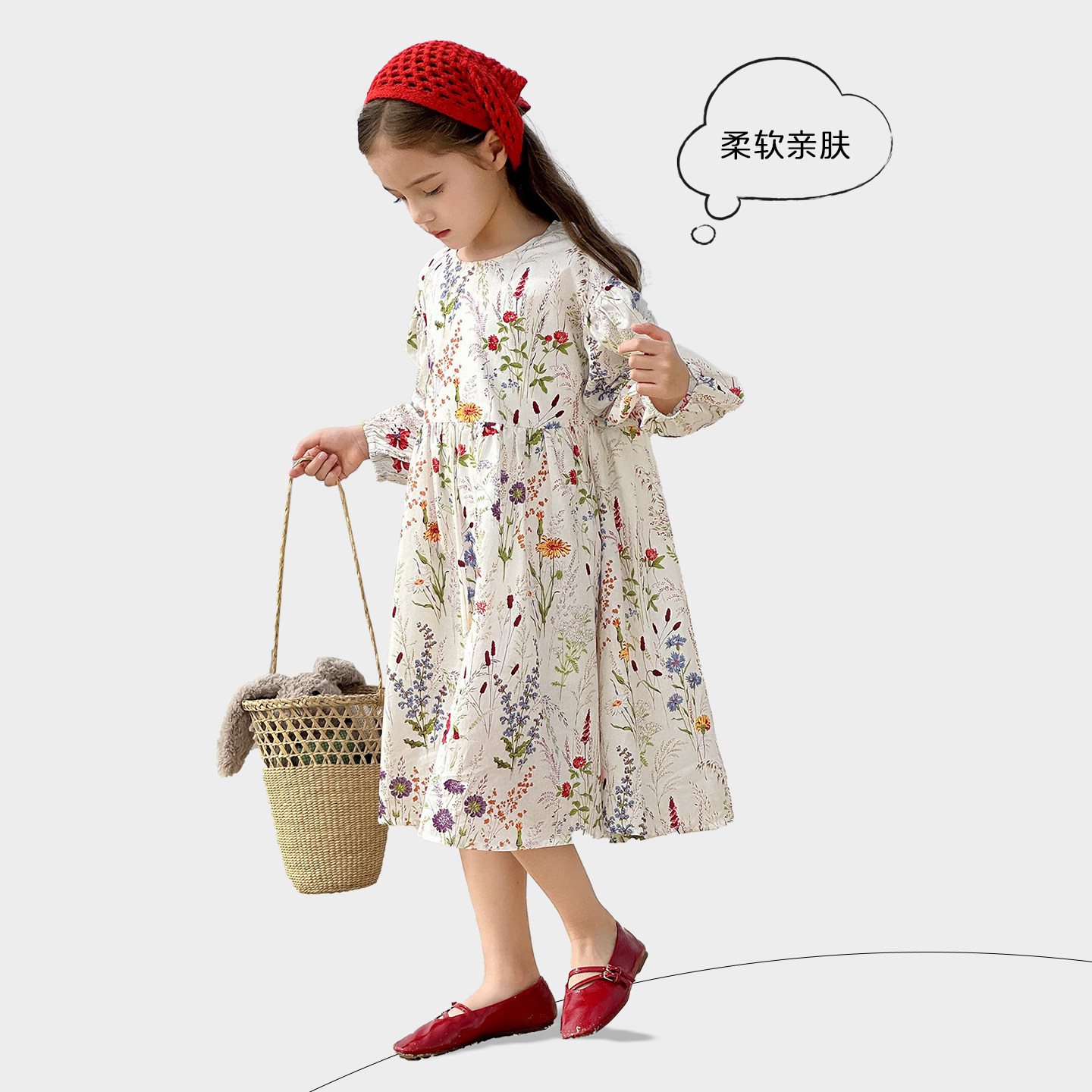 图图小象童装连衣裙2026春秋款女童碎花裙长袖花仙子亲子款裙子
