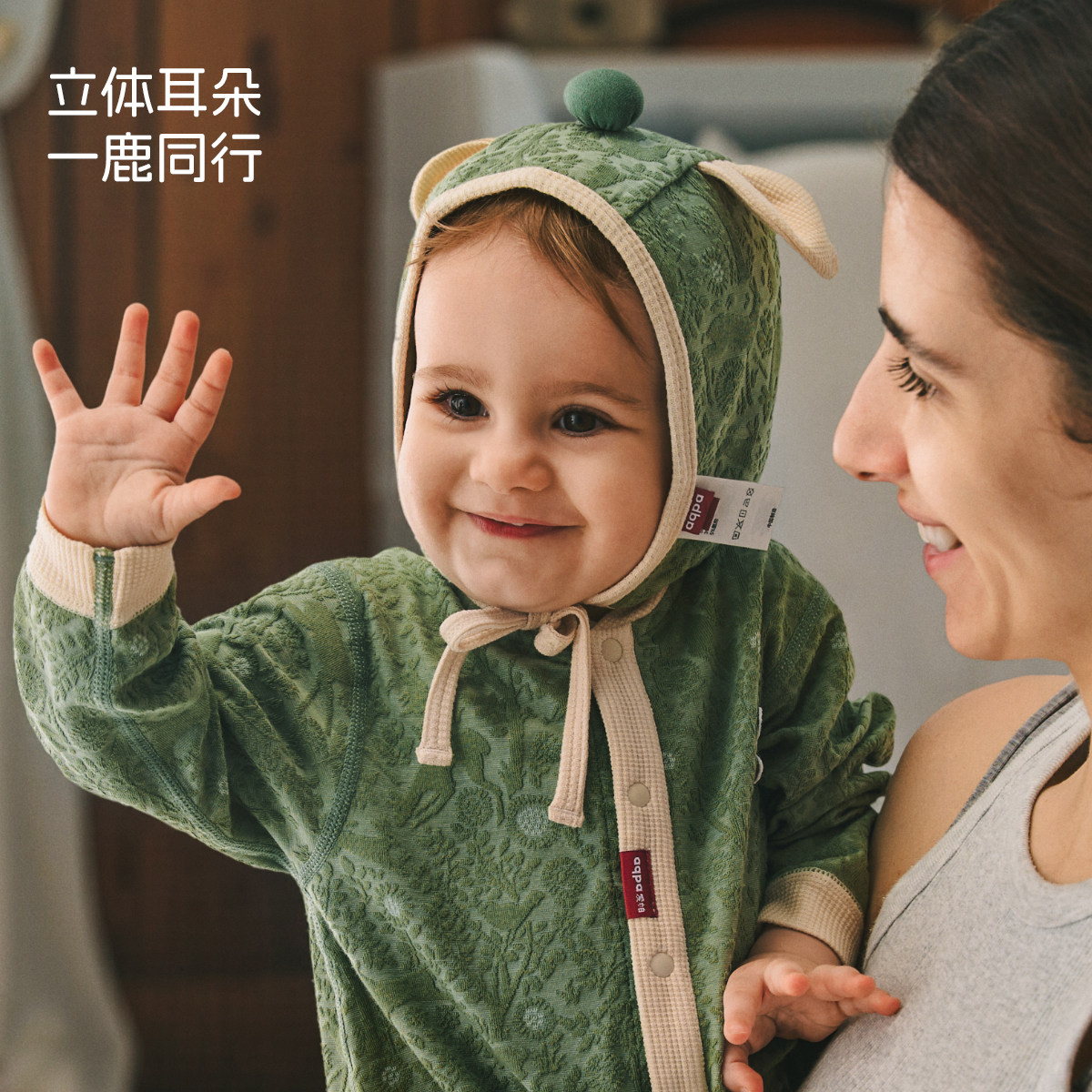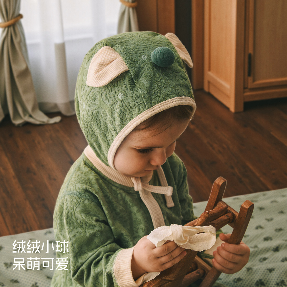 十月结晶粒粒阳光婴儿帽子一体加厚帽子秋冬季保暖护耳帽宝宝冬帽