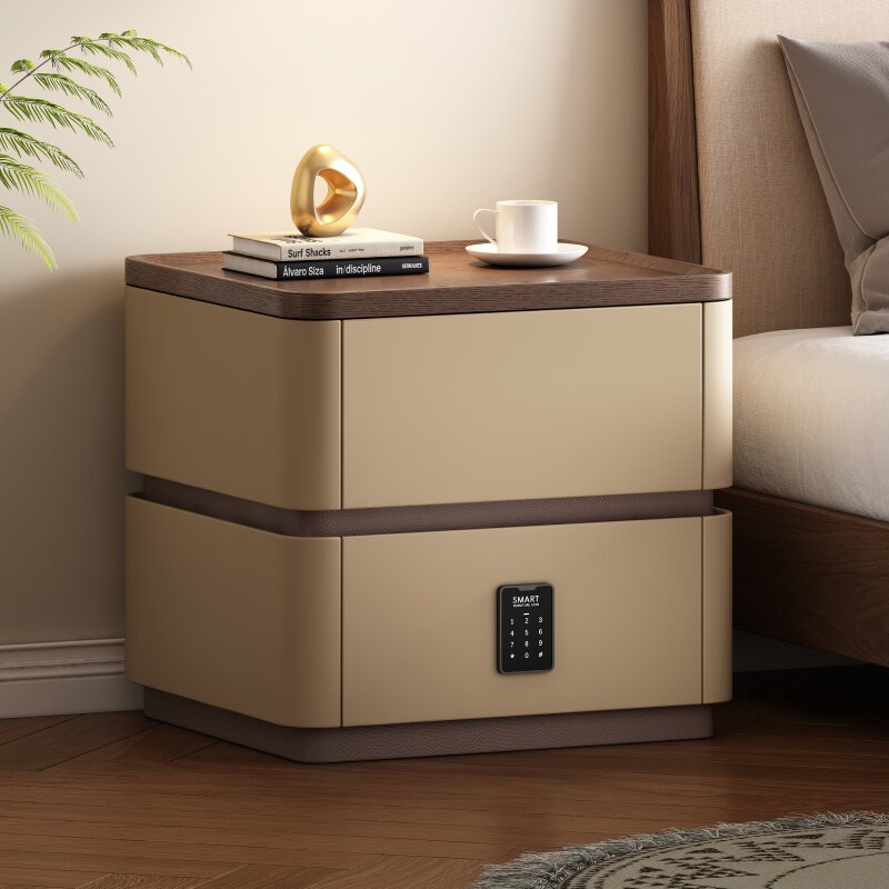 卧室实木床头柜保险箱现代家用2025爆款带锁轻奢高级感小型收纳柜
