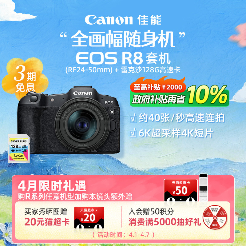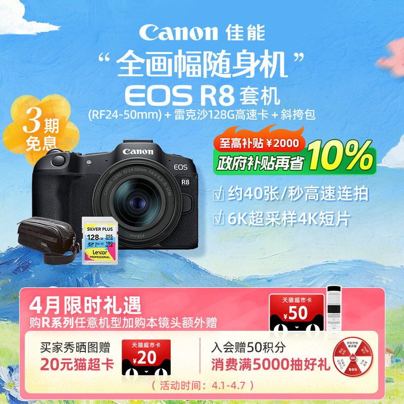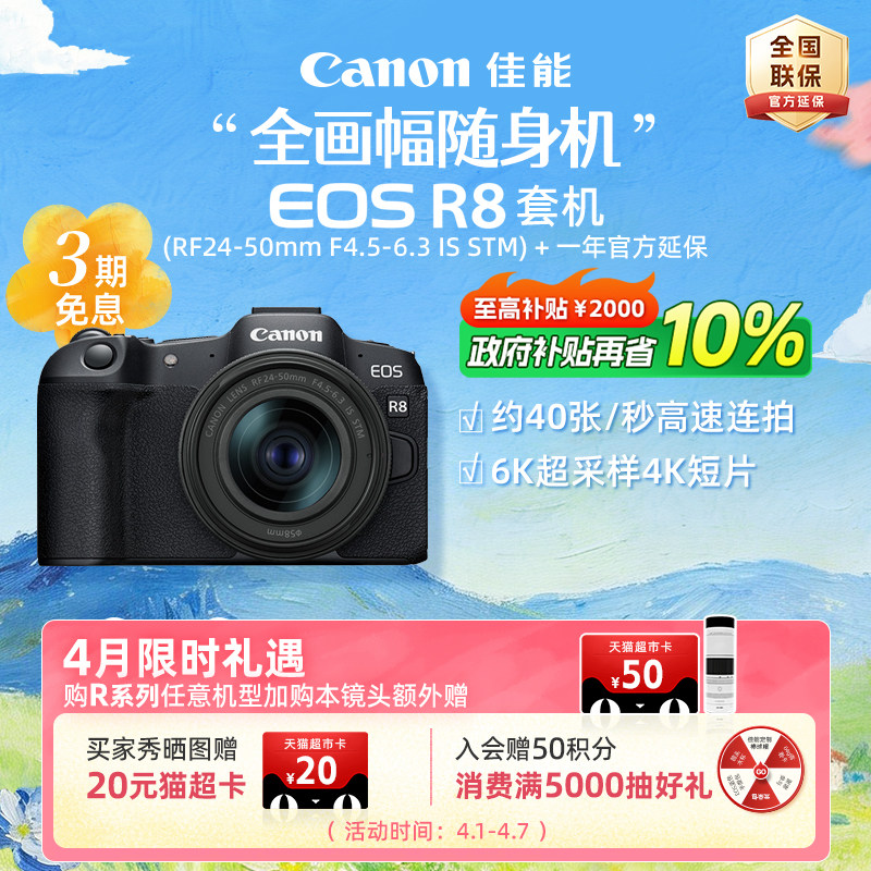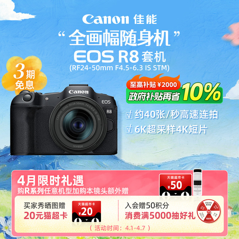 [旗舰店]Canon/佳能EOS R8机身/套机 全画幅专业微单高速连拍相机