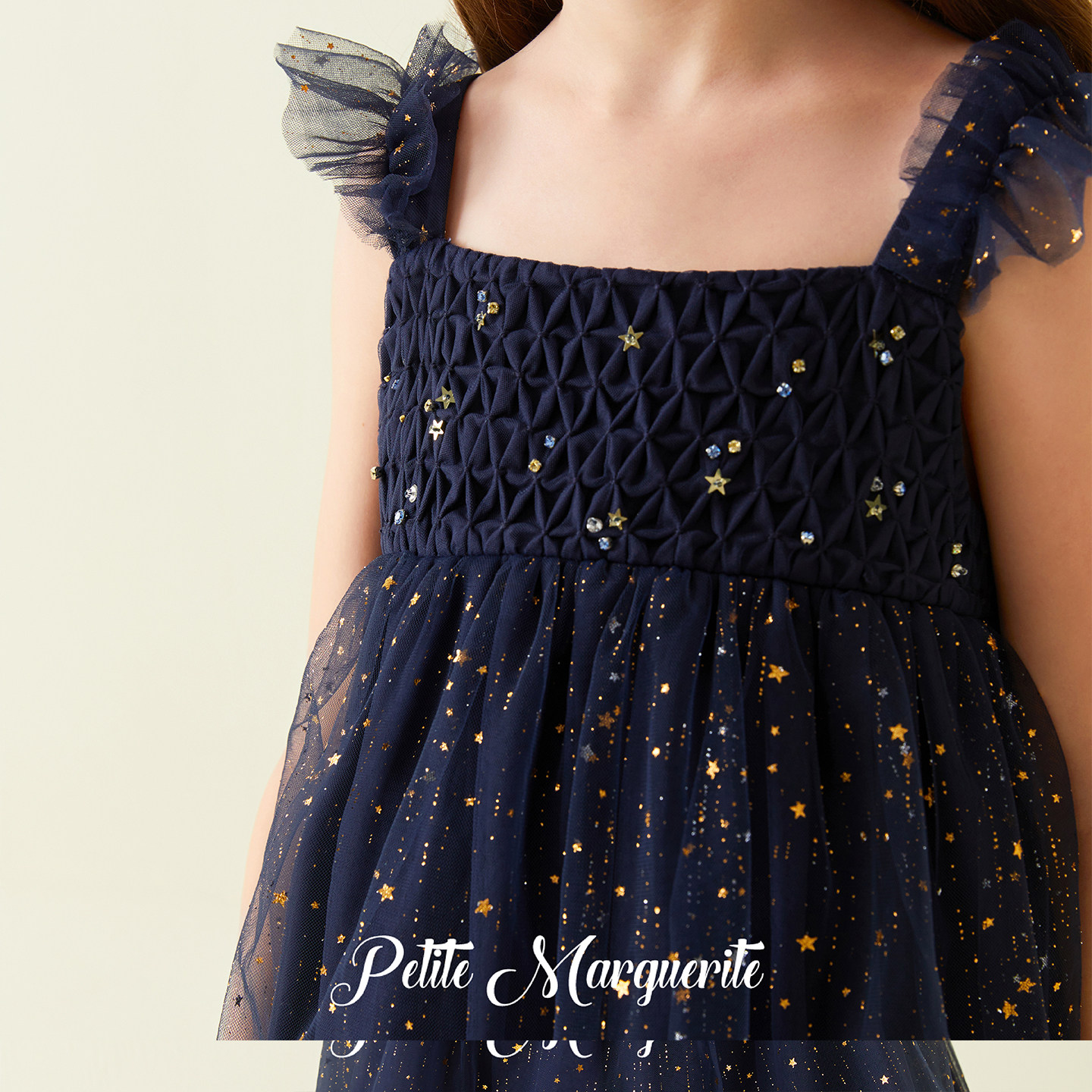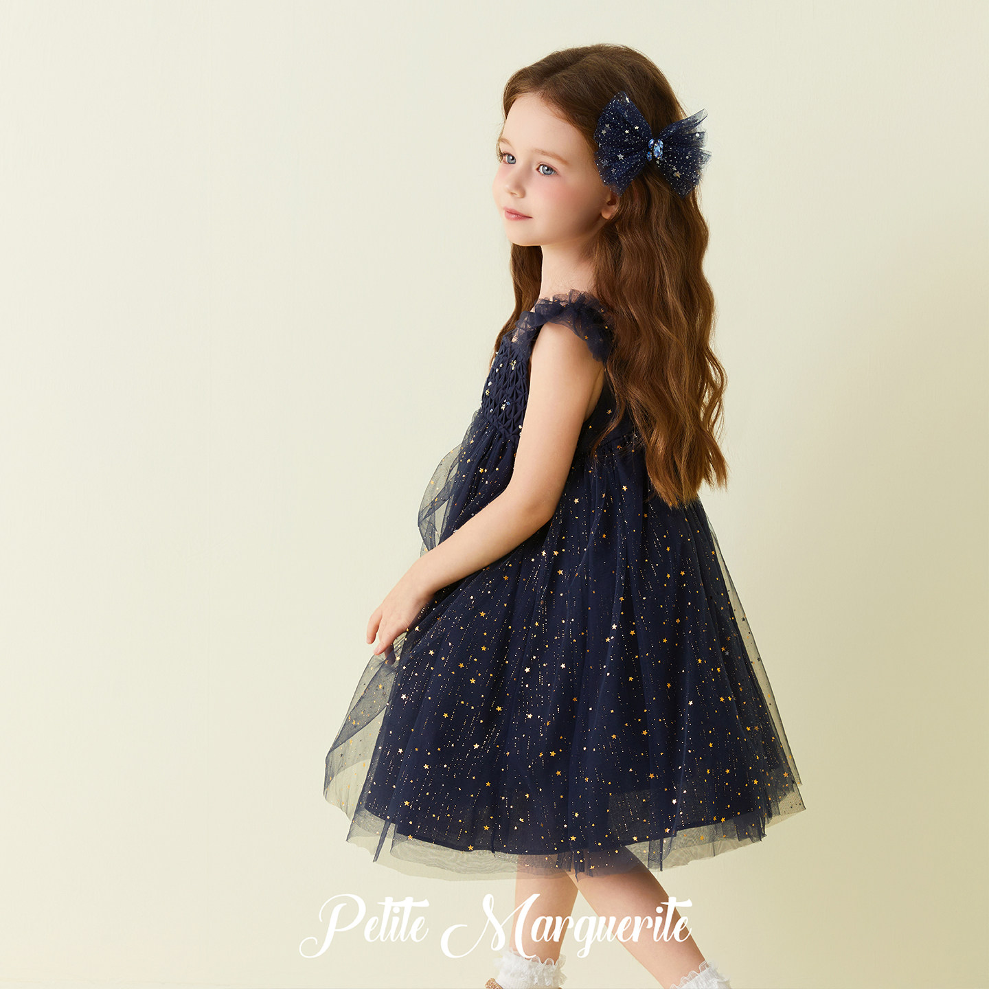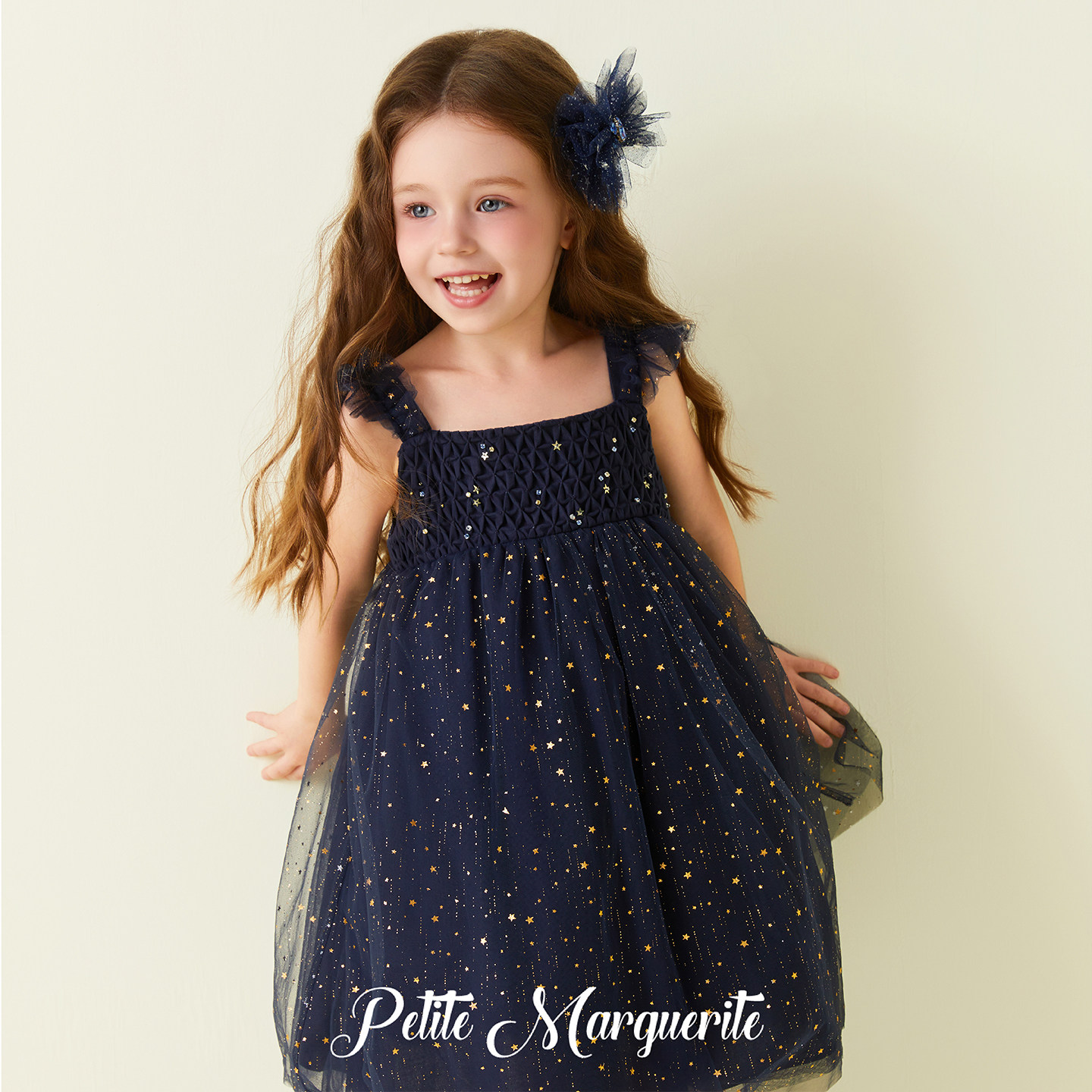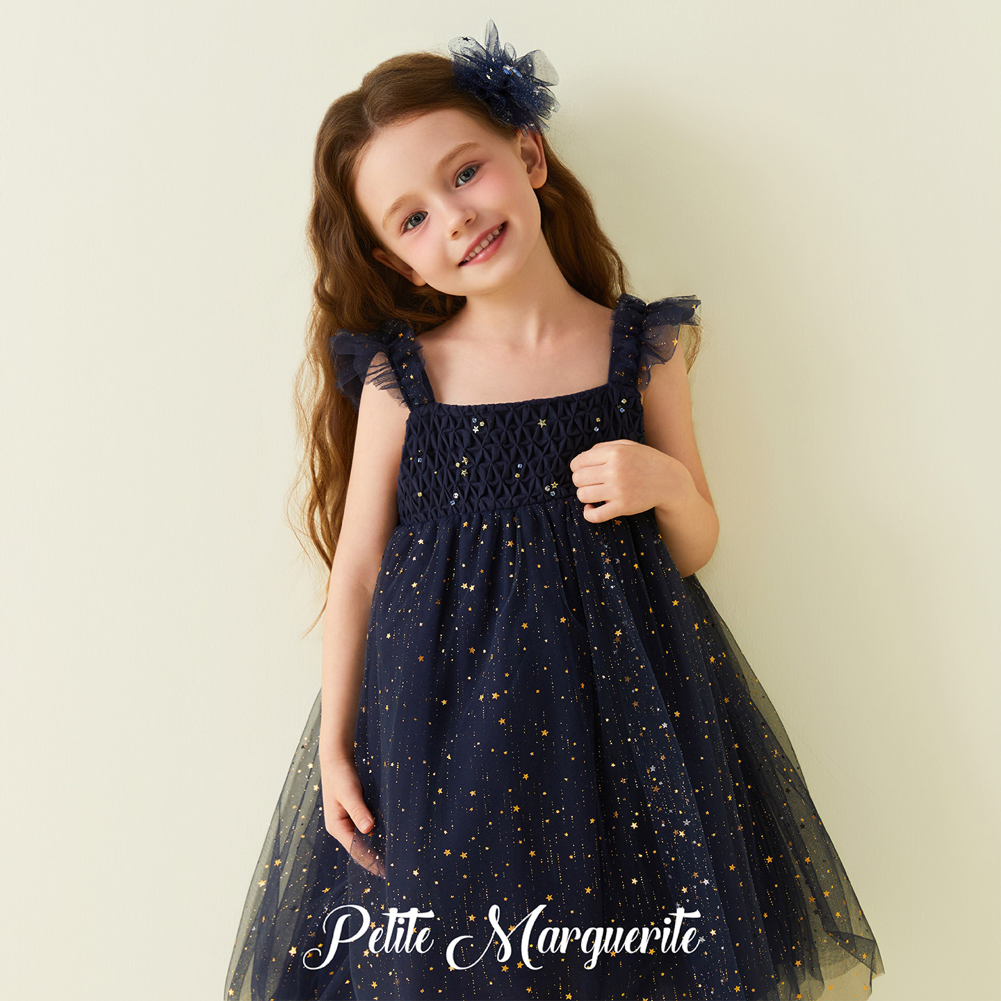 Petite Marguerite小雏菊童装· 藏青色星空蜂巢褶吊带裙礼盒装
