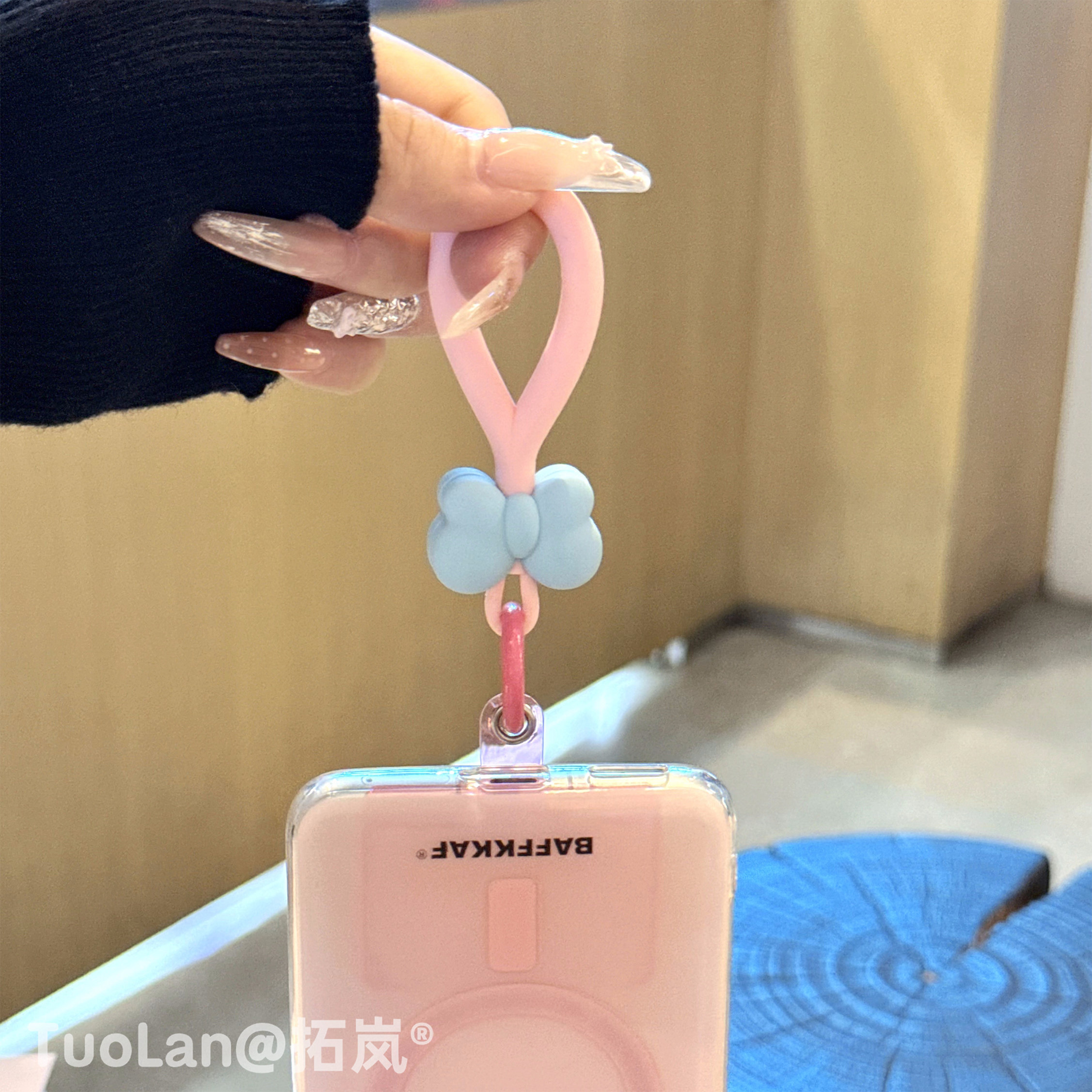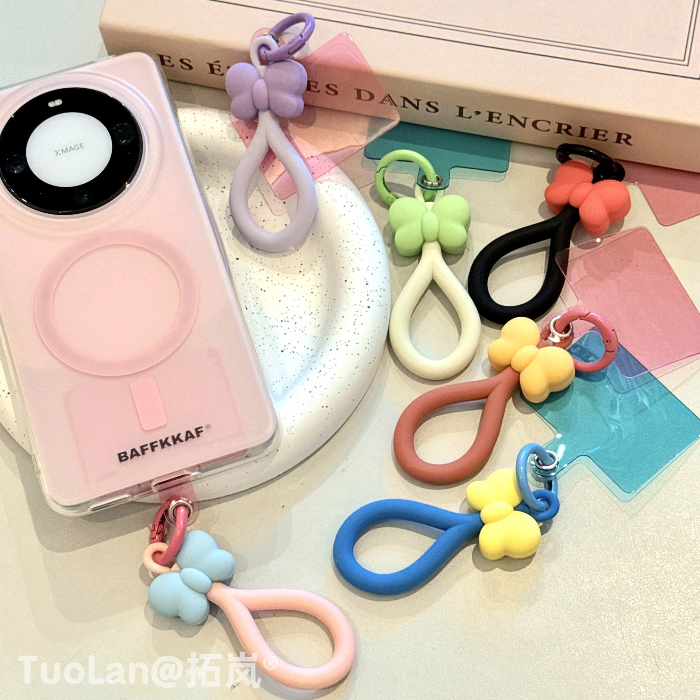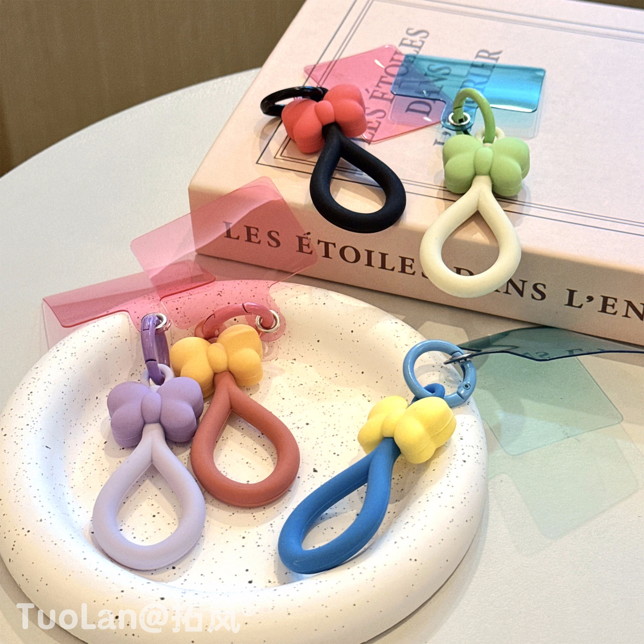 拓岚 日韩超火ins多巴胺撞色网红博主同款创意立体硅胶套蝴蝶结指环手机壳短挂绳手提链条夹片固定防摔挂饰女