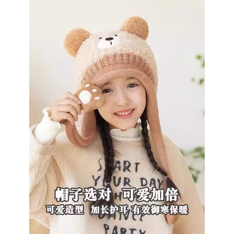 hugz儿童帽子男孩女孩保暖针织毛线帽秋冬季户外护耳防风熊仔帽子
