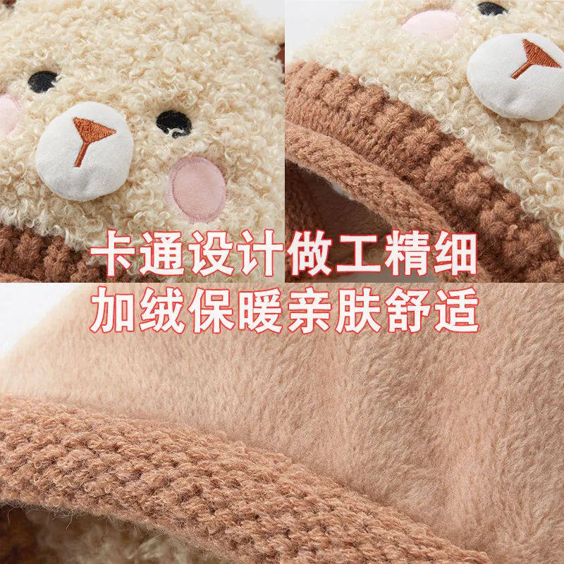 尼多熊儿童帽子围巾一体冬季防风帽宝宝毛绒护耳帽女童加厚保暖帽