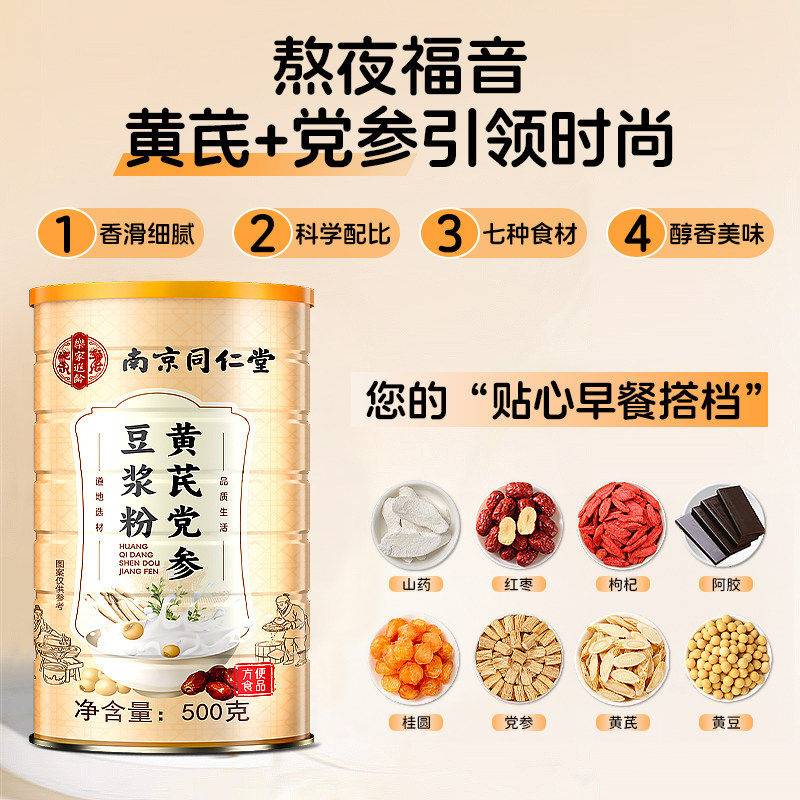 同仁堂黄芪党参豆浆粉无糖低脂减补气养血肥营养代早餐官方旗舰店