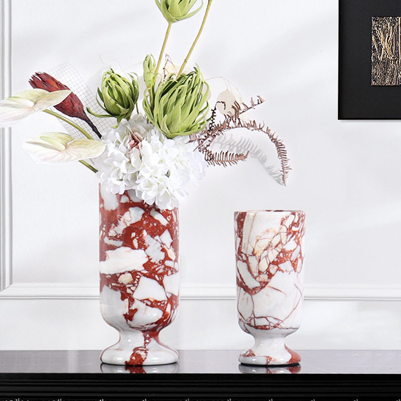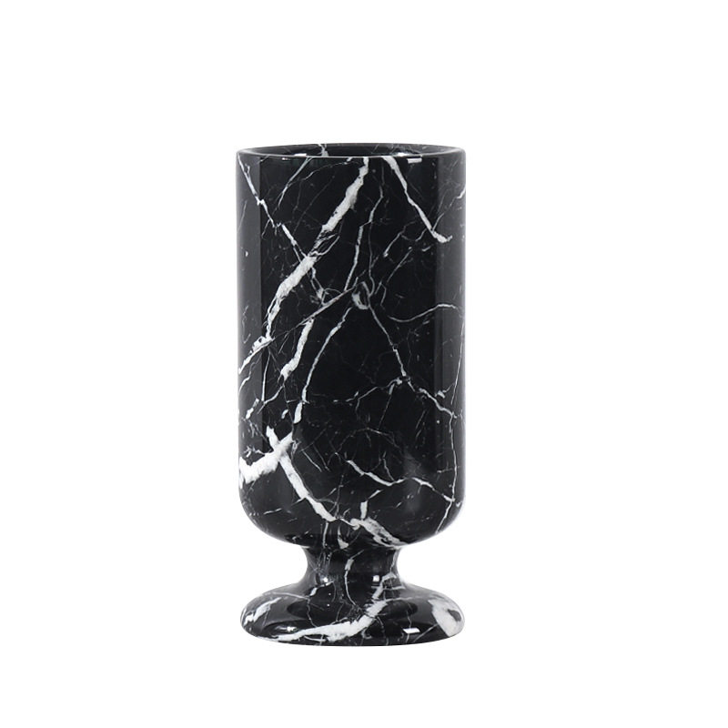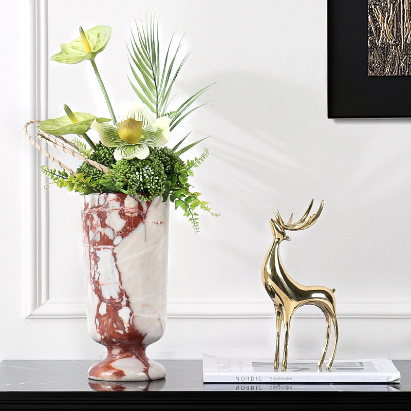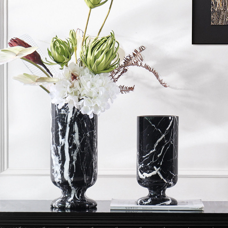 天然大理石花瓶摆件酒店样板间艺术干花插花器茶几桌面装饰品