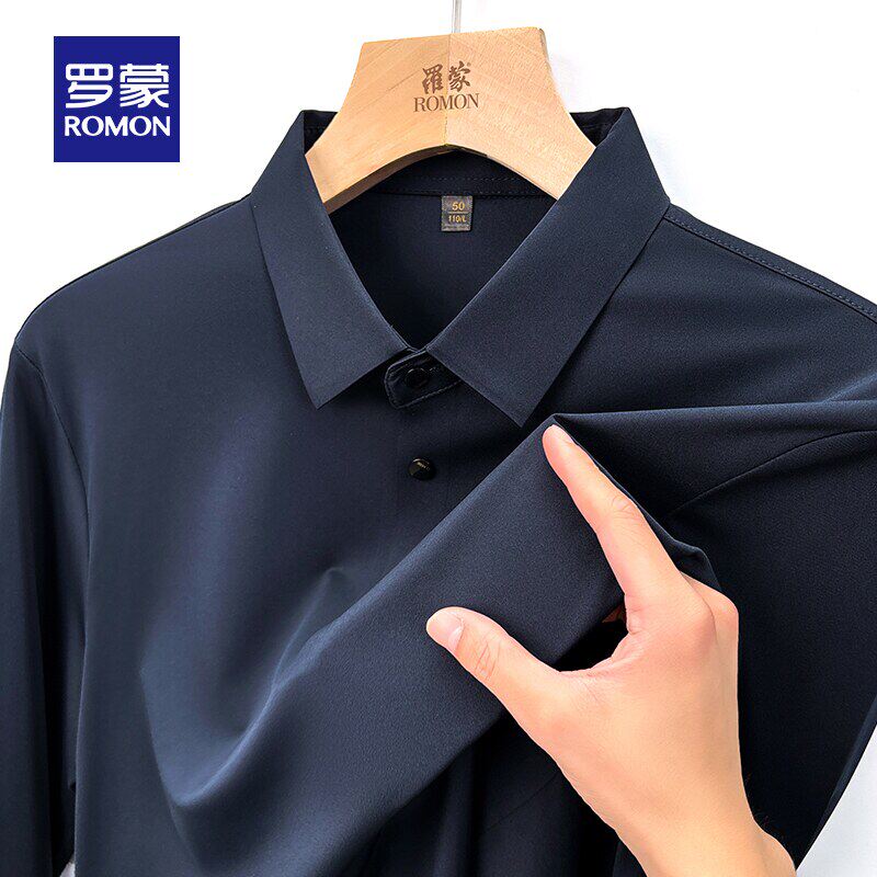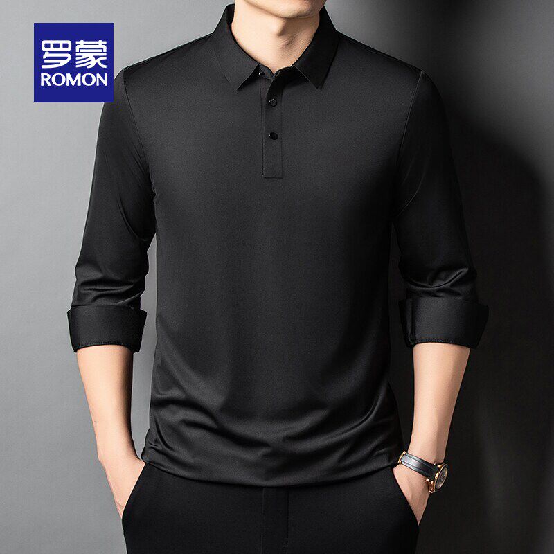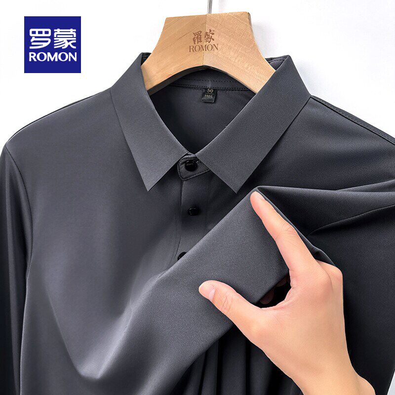 罗蒙男士商务休闲长袖POLO衫2026春季新款弹力百搭纯色翻领T恤衫