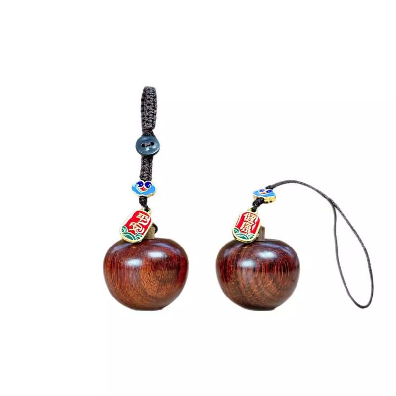 紫檀木雕圣诞礼物平安果手机链包包挂件钥匙扣包包吊坠手把件