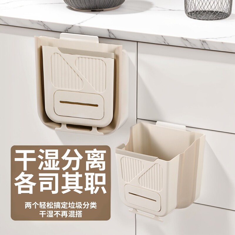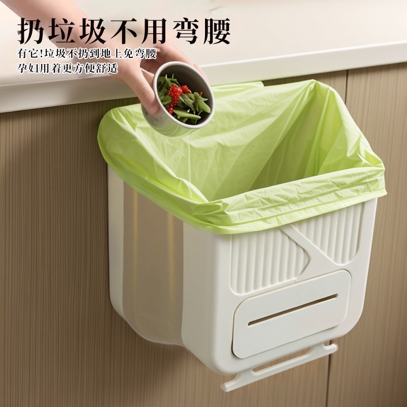 奶油风折叠垃圾桶壁挂式家用厨余橱柜门专用收纳桶卫生间厕所纸篓