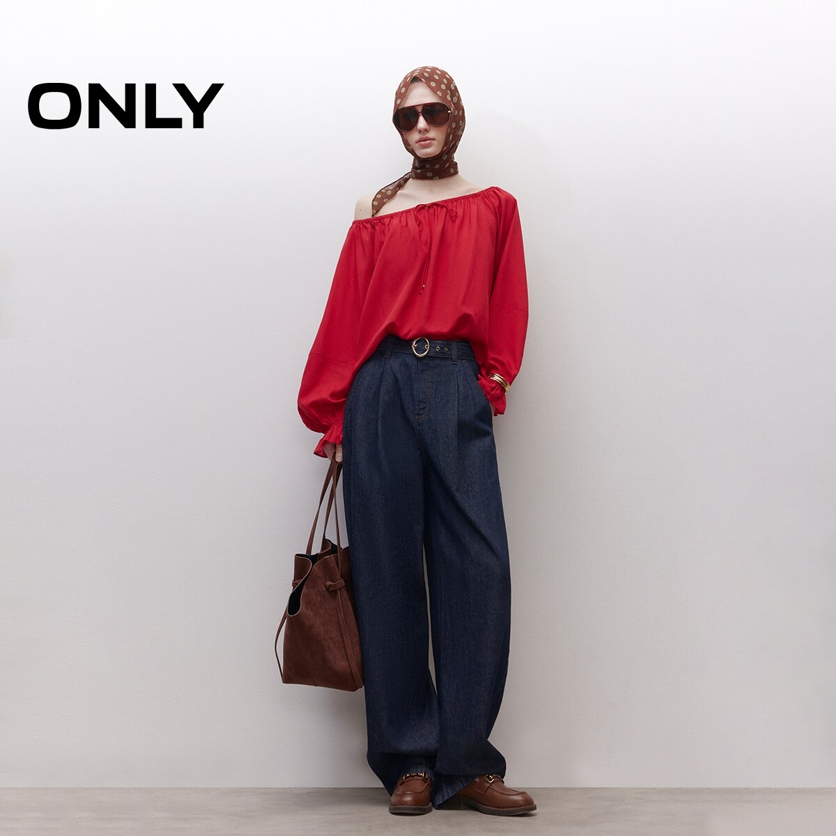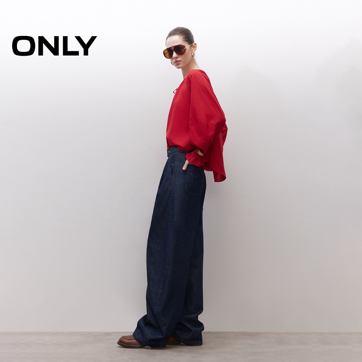 松弛阔腿剪裁,品牌定制牛仔腰带