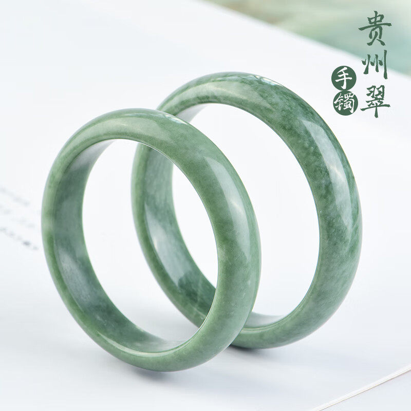 正品贵州翠镯子翠色真玉石手镯飘花玉镯子学生少女妈妈礼物可复检