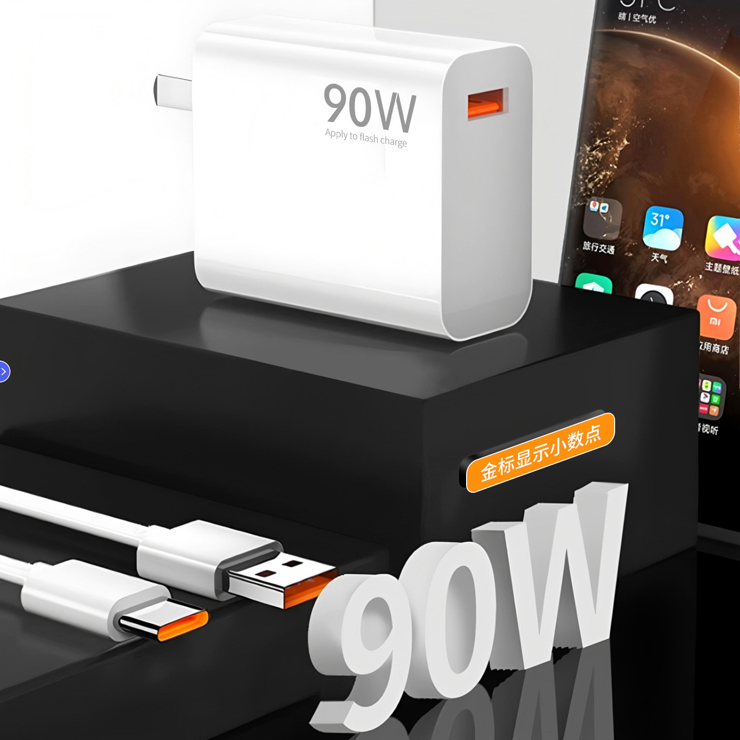 3C认证力拓AC33充电头适用小米红米手机充电器兼容67W/90W/120W超级闪充显示金标蓝标快充头充电套装批发