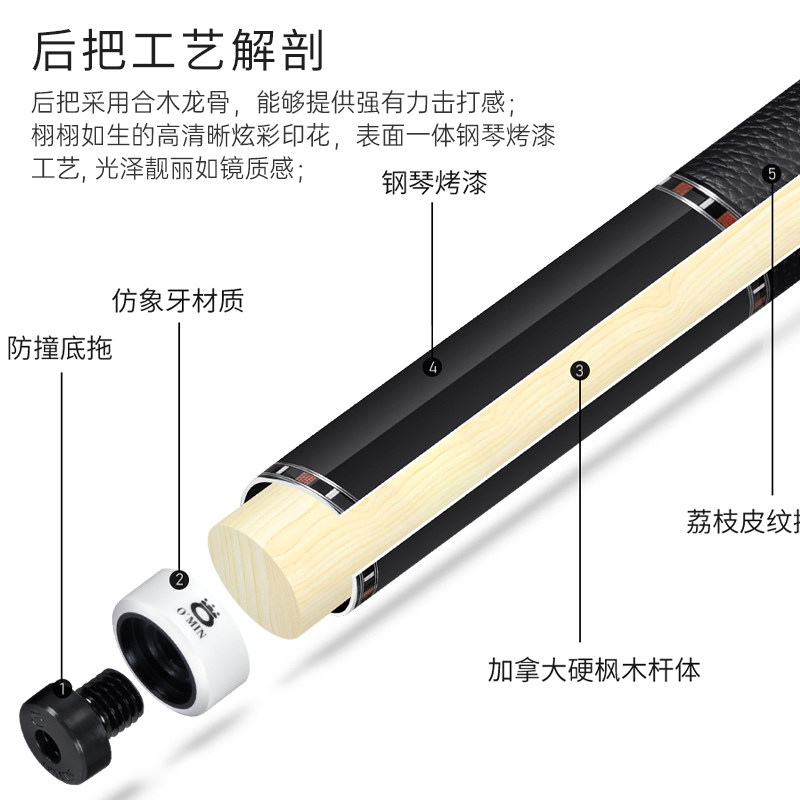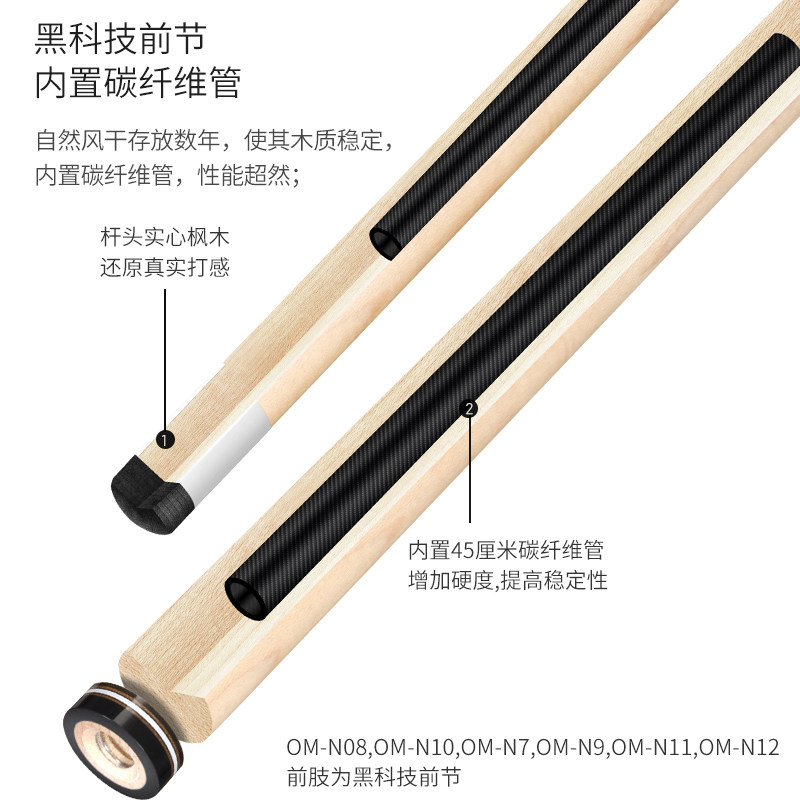 奥秘台球杆大头美式九球杆九球中式黑八球杆官方旗舰店正品桌球杆