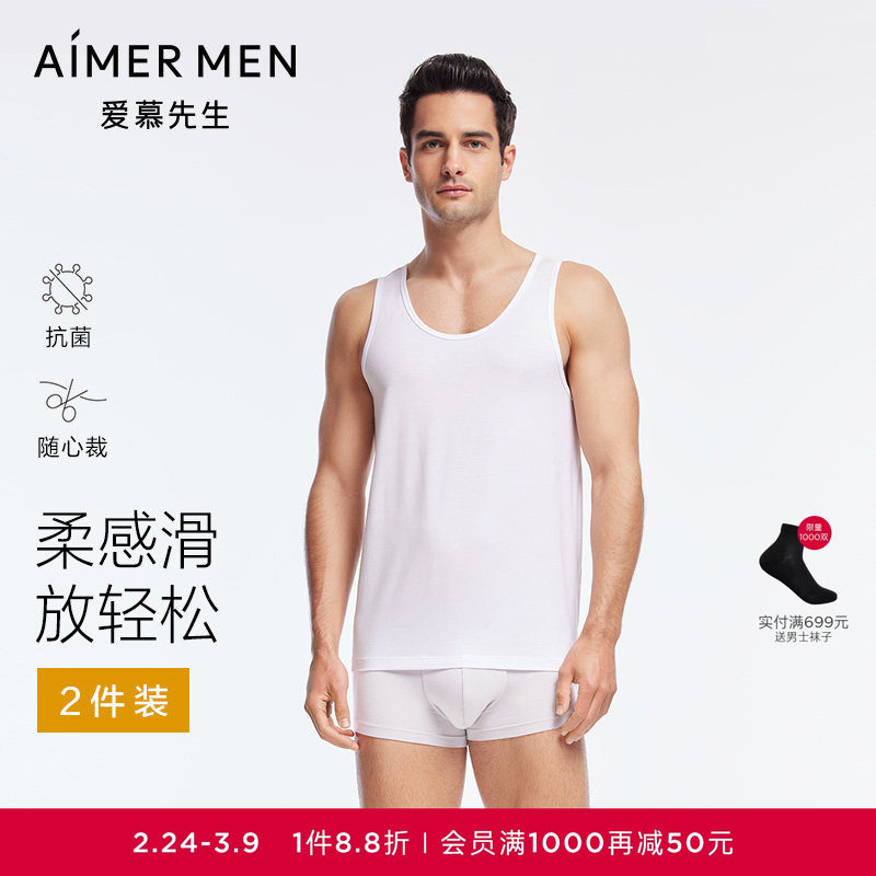 【2件装】爱慕先生HELLO系列春夏轻薄莫代尔男士抗菌打底跨栏背心