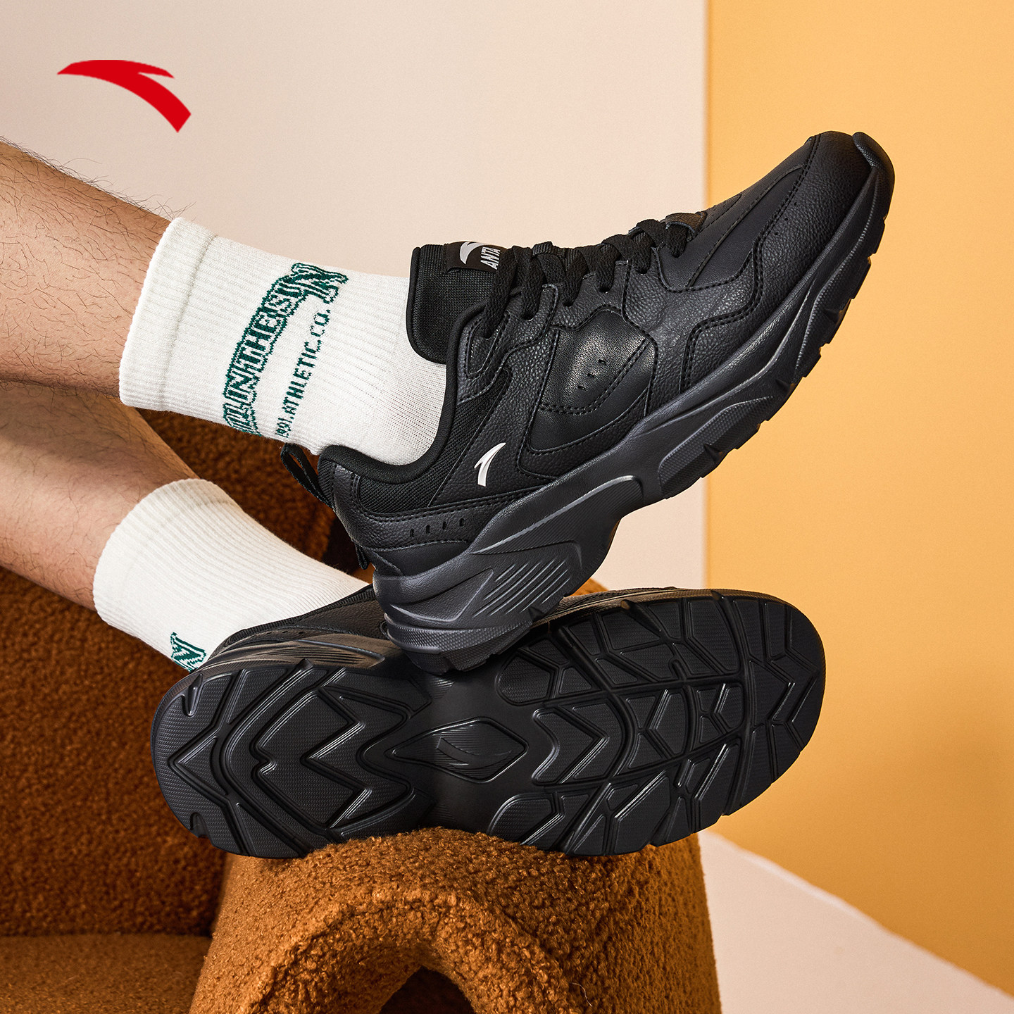安踏运动鞋男鞋2026新款春季潮流休闲鞋复古跑鞋男款黑色老爹鞋