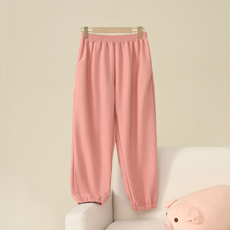 睡裤女长裤春秋薄款可外穿大码纯色收脚有口袋春夏季家居裤女棉绸